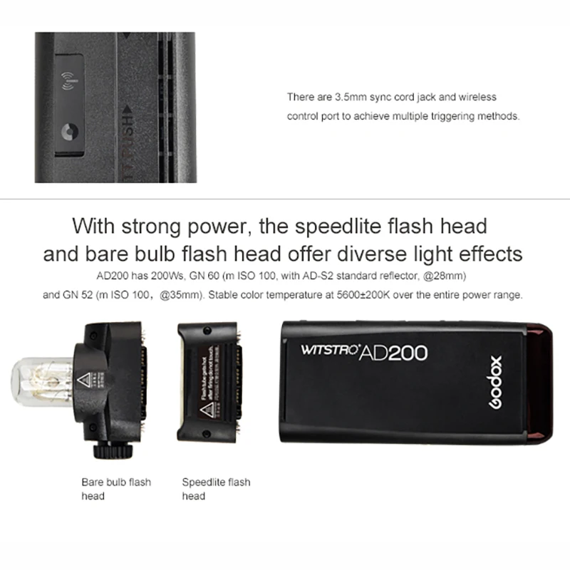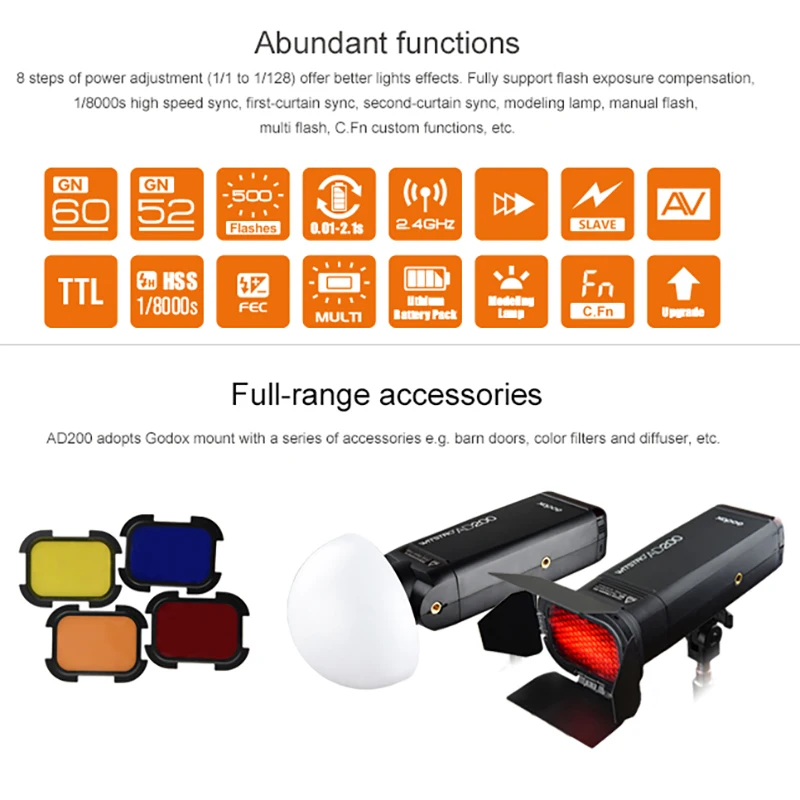 GODOX AD200 TTL 2.4G HSS 1/8000s Pocket Flash Light Double Head 200Ws with 2900mAh Lithium Battery Flashlight Flash Lightning
