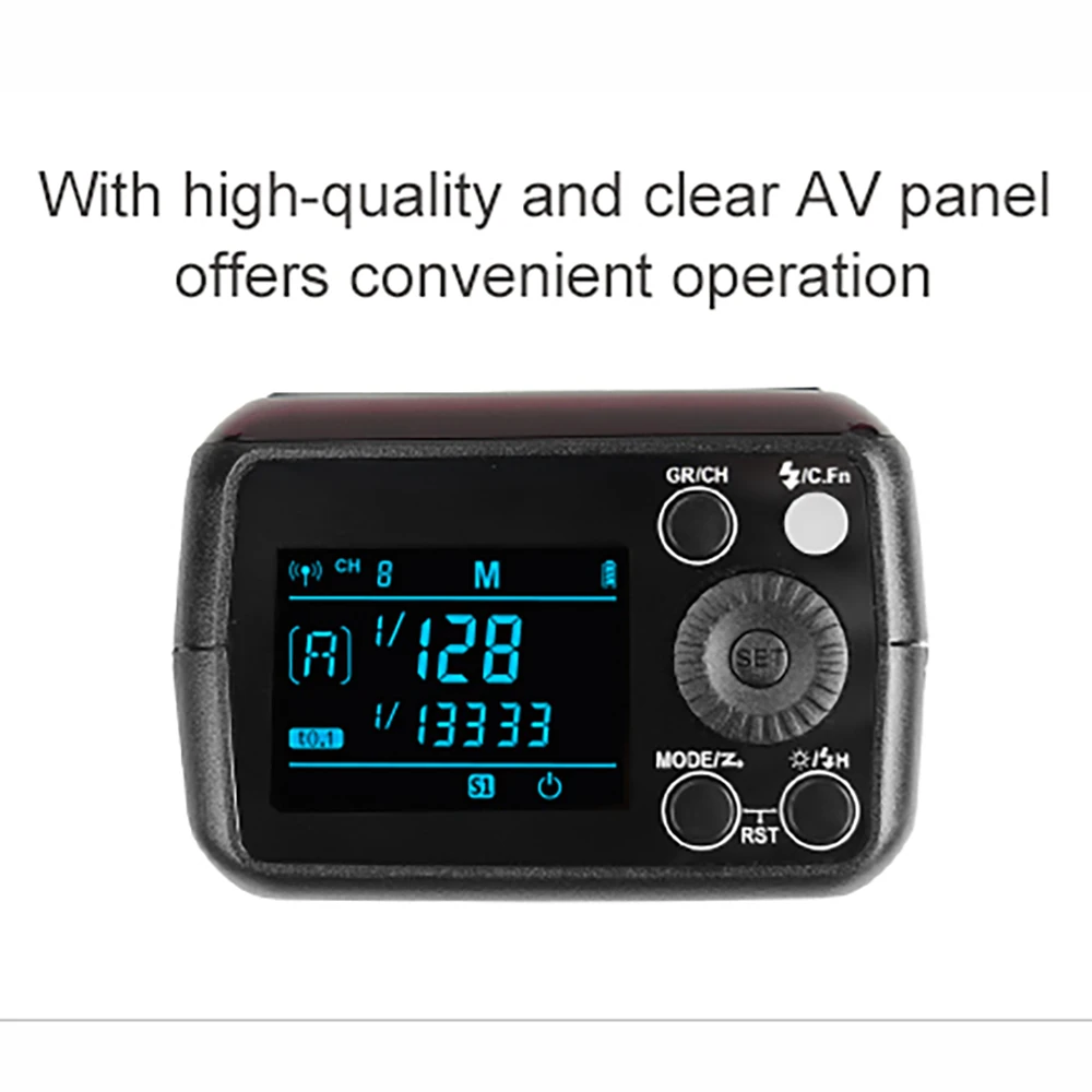 Compatible cameras under radio transmission (as slave unit): Nikon (X1N as master unit), S0ny (X1S as master unit), Canon (X1C as master unit)
