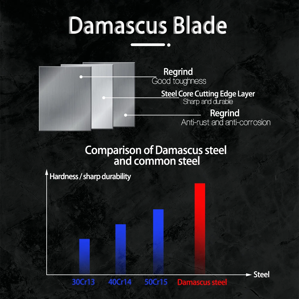 1. Профессиональный нож шефа: Этот нож для повара подходит для резки хлеба, овощей, филе или мяса. Острый нож также подходит для домашнего и профессионального использования. Резка как мастер-шеф принесет вам больше радости на кухне. 2. Многофункциональный нож: Этот профессиональный 8 ''нож шеф-повара может легко обрабатывать ваши ежедневные кухонные задачи измельчения, нарезки, измельчения и нарезки фруктов, овощей, нескольких видов мяса, включая рыбу, кухню и говядину. Это действительно универсальный нож для приготовления пищи. 3. Ультра-острый край: Острота является наиболее важным для лучшего режущего ножа, и это видно На лезвиях ножа, который идеально подходит для выполнения работы и выполнения работы. Ручная полировка мастера с многолетним опытом, чтобы обеспечить его длительную остроту. Эргономичная ручка: Лезвие этого ножа шеф-повара интегрировано с мягкой и удобной ручкой, создавая идеальное сцепление; Эргономичная форма обеспечивает правильный баланс между ручкой и тонким лезвием, обеспечивая легкость движения. 4. Красивый узор: Специальное лезвие с изображением помахала особенно и поразительно (настоящий Дамаск). Мы предлагаем 100% удовлетворение или возврат денег. Обеспечивает срок службы от дефектов материала и изготовления.
