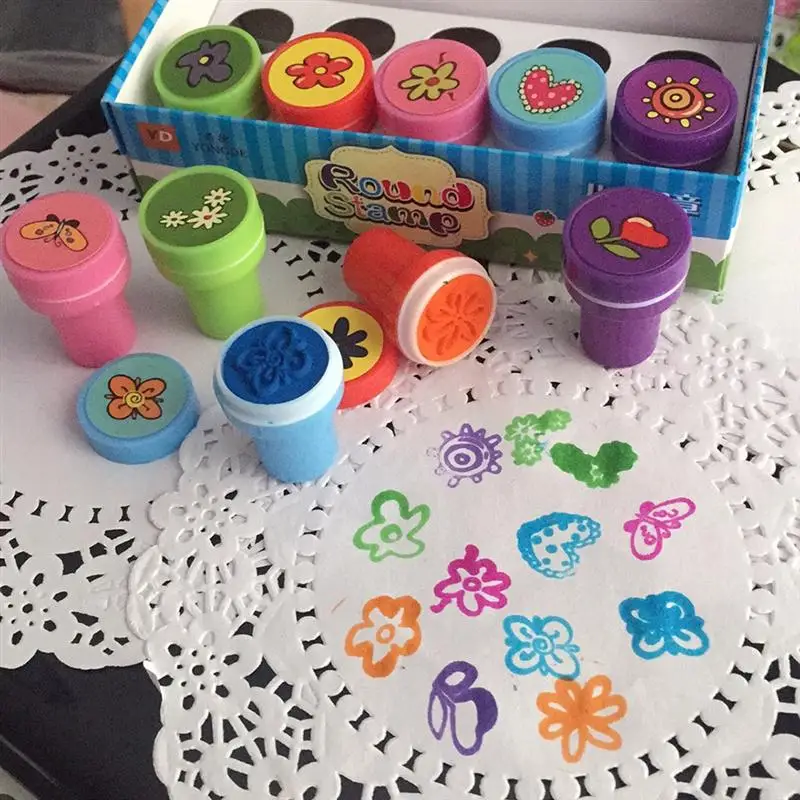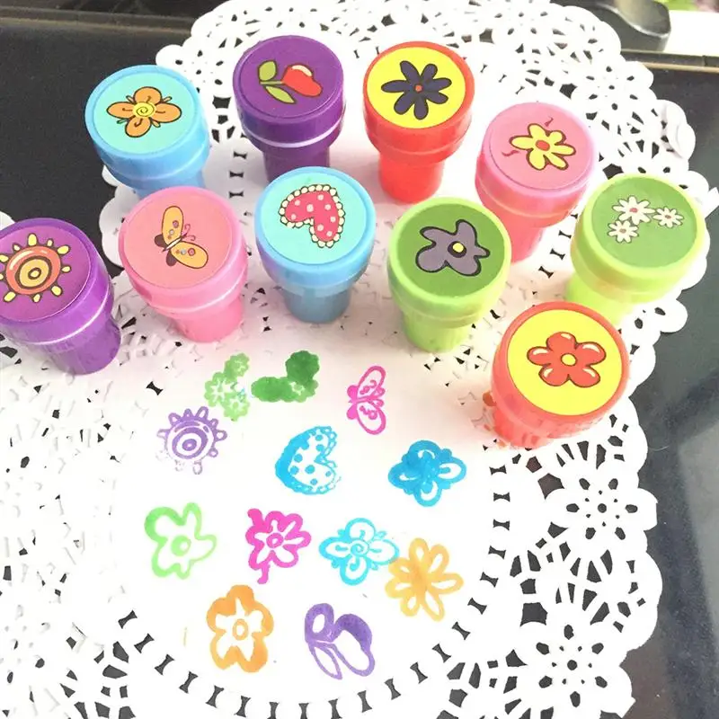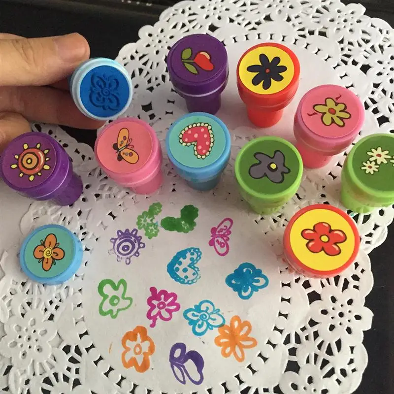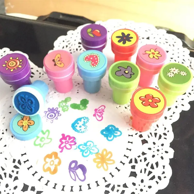 1 х Набор из 10 шт. детские милые пластиковые самописающие штампы игрушки Детские DIY ремесло вечерние сувениры подарок на день рождения сумки игрушки ассорти штампы (цветы)