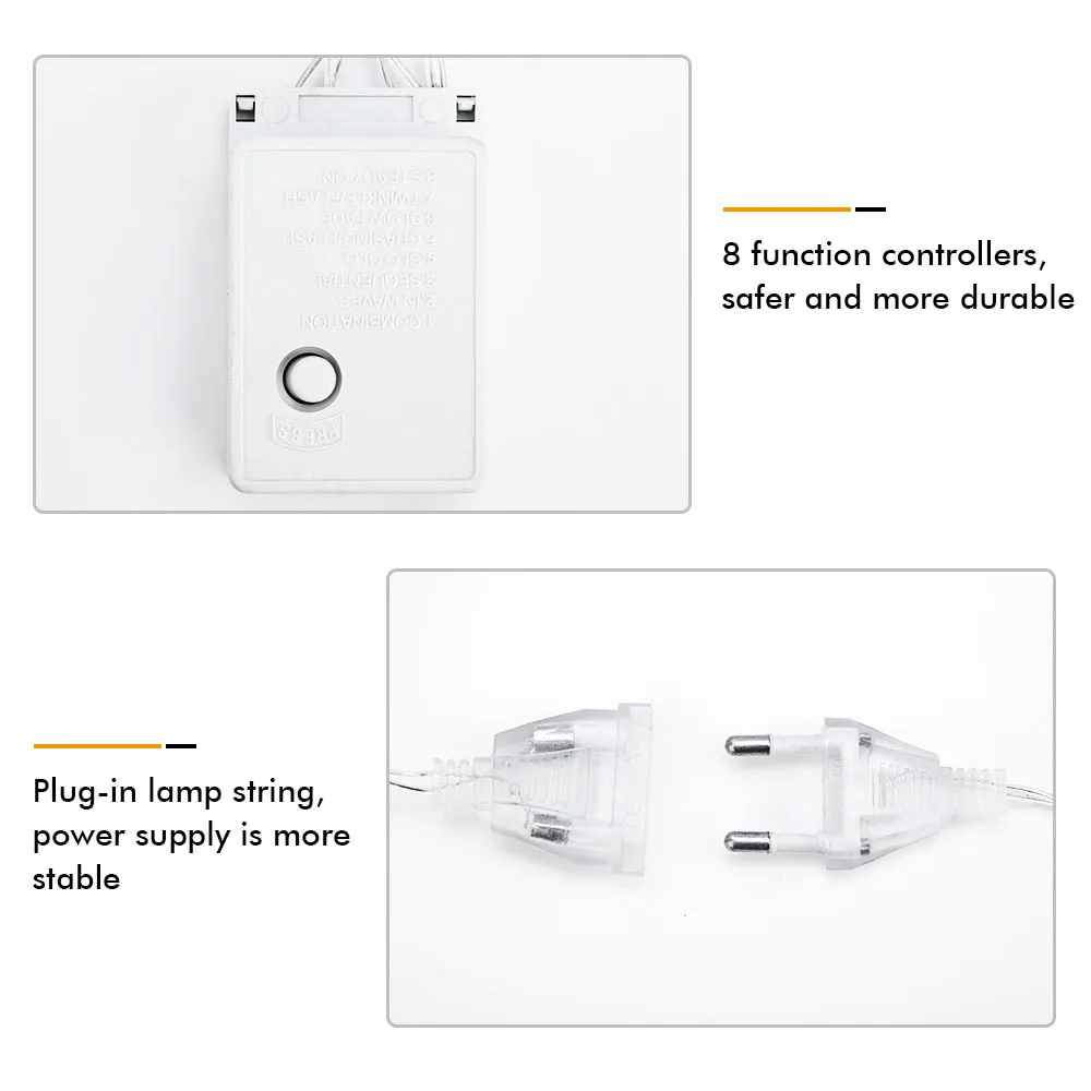 √Очаровательные огни делают Ночь еще красивее и создают идеальную атмосферу для вашего места. Несомненно, вы почувствуете элегантную роскошь и романтичность. √ IP44 водонепроницаемый, прочный для ежедневного использования. √Plug источника питания, адаптированные к 100V-240V, низкое тепловыделение, энергосберегающие и не вредит экологии, безопасен в эксплуатации. √ 8 режимов мигания с блоком управления. (комбинация/в волнах/последовательный/Slo-glo/чеканка/медленное выцветание/мерцание/Постоянное включение) √Идеально подходит для внутреннего и наружного освещения, Рождества, вечерние, Дня Святого Валентина, свадьбы, дома, окна, ванной комнаты, фестиваля, праздника, шоу, ресторана, отеля, коммерческого здания, торговый центр и т. Д. Спасибо, что сделали нас частью вашего украшения! 1. Цвет: холодный белый/теплый/цветной 2. Напряжение: 100-240 В 3. Мощность: 8 Вт 4. Вилка: штепсельная вилка европейского стандарта