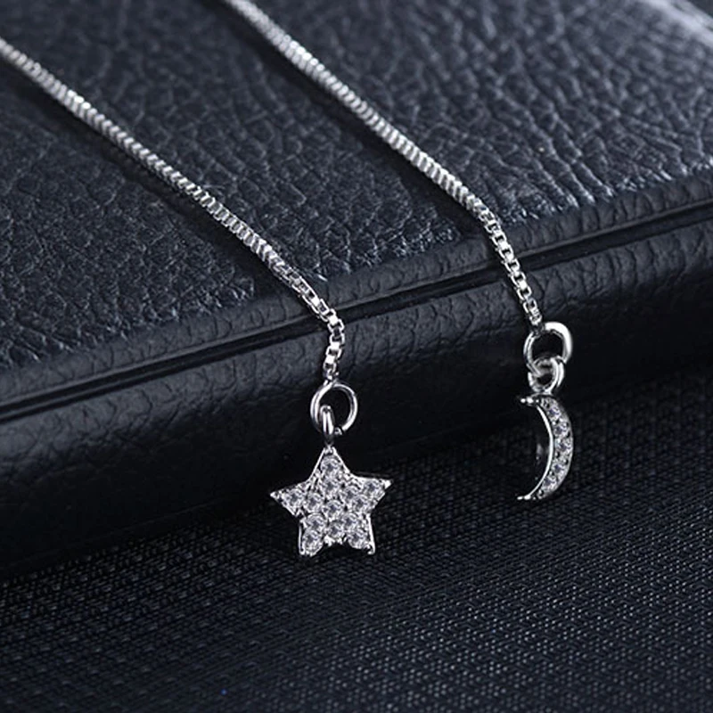 Модные Асимметричные серебряные серьги, Женские Ювелирные изделия из стерлингового серебра 925 пробы, луна, звезда, CZ Циркон, Длинная кисточка, цепочка, серьги-капли Материал: серебро 925 пробы Состояние: 100% новый бренд Повод: вечерние/Свадебные/Помолвочные/День рождения/День Святого Валентина/День Матери Размер подвески: как показано на рисунке