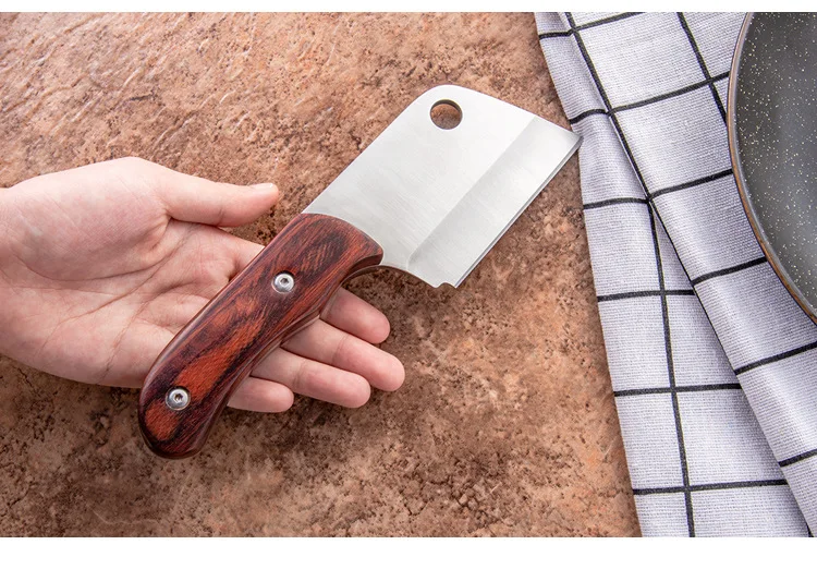 Описание продукта: Сталь изготовлена из высококачественной нержавеющей стали, которая является твердой и стабильной, с тяжелой задней частью и твердостью 58HRC. Ловко маленький, очень легко нарезать мясо и кости, и легко нарезать кору на открытом воздухе. Полная ручка Tang, сталь всегда проходит ручку, чтобы сделать инструмент прочность и баланс. Сцепление очень удобное. Цвет деревянной ручки материала, ногти устойчивы, внешний вид красивый и элегантный, добавляя красоты. Лезвие имеет круглое отверстие. Легкий для челнока канатов для различных целей. Маленький помощник в повседневной жизни, в качестве кухонного ножа, утилиты, Кливера, паринга, овощного ножа. Активный отдых на свежем воздухе-незаменимый инструмент для семейных встреч. С втулкой ножа, это безопасно и удобно носить с собой. Подходит для помещений, кемпинга, рыбалки, приключений на открытом воздухе и самозащиты. Это также является прекрасным подарком Информация о продукте Полная длина: 19,5 см Длина лезвия: 7,8 см Ширина лезвия: 5,8 см Толщина лезвия: 4 мм Вес: 244,5 г