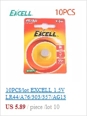 10 шт./лот Excel 1,5 V LR66/177/377/AG4 Кнопка ячейки Батарея аккумулятора кнопочного типа длинные Срок годности для часы электронные игрушки