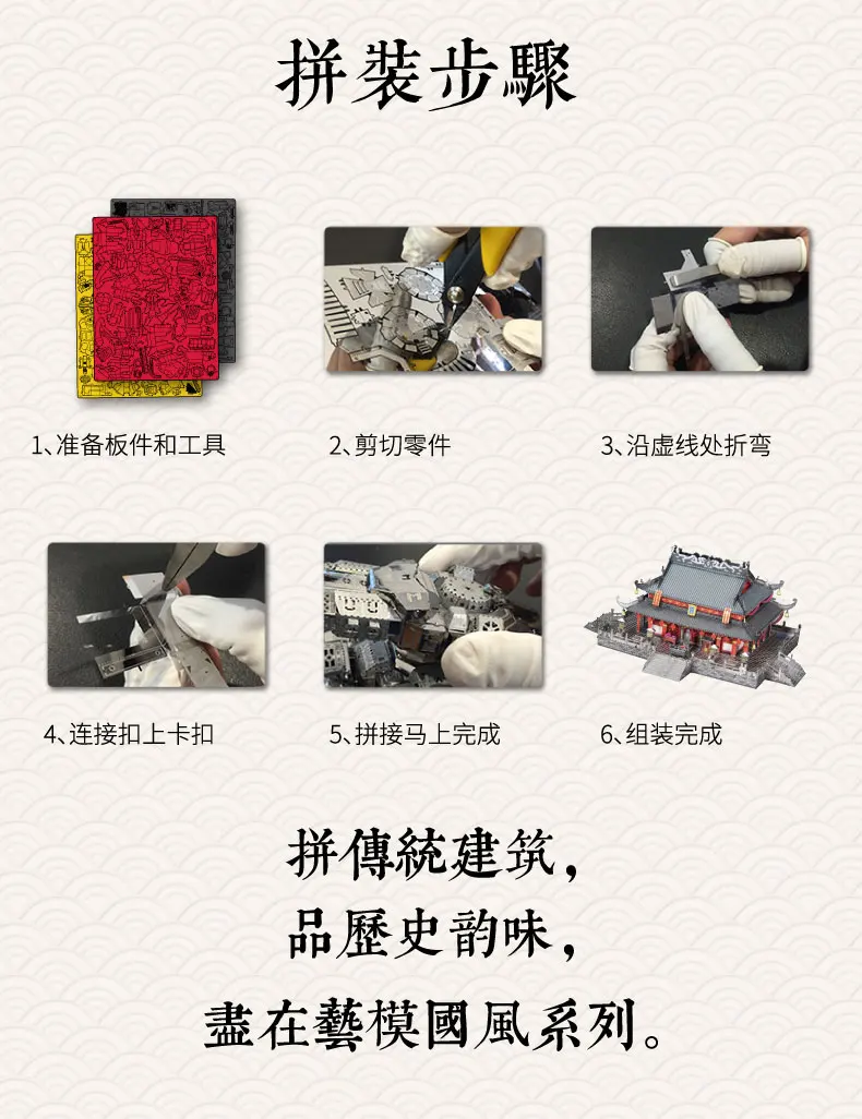 Лицензия MU (художественная модель)Оригинальный дизайн, клей не требуется.Состояние на 100% абсолютно новый и хорошего качества.Удивительные детали и прекрасный опыт DIY.Шаг за шагом руководство по изображению, Восточное строительство.Примечание: