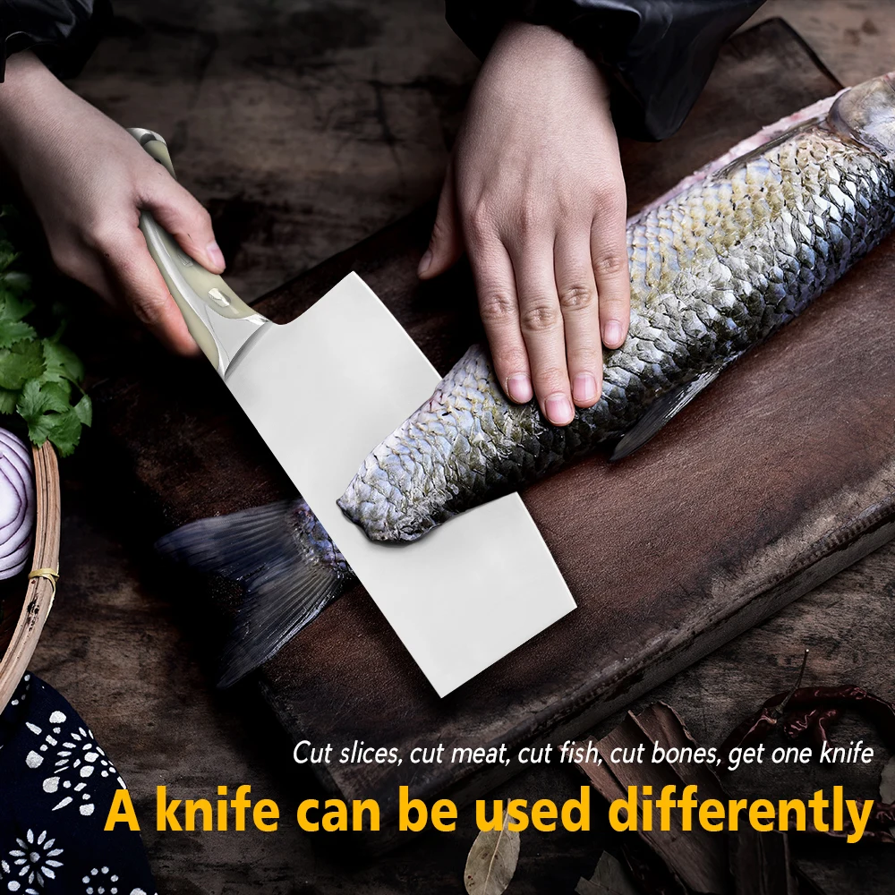 XYj 7 дюймов Нержавеющая сталь разделочная Ножи сварки Смола волокно ручкой Кливер мяса, рыбы стейк Кухня Пособия по кулинарии инструмент БЕСПЛАТНАЯ КРЫШКА