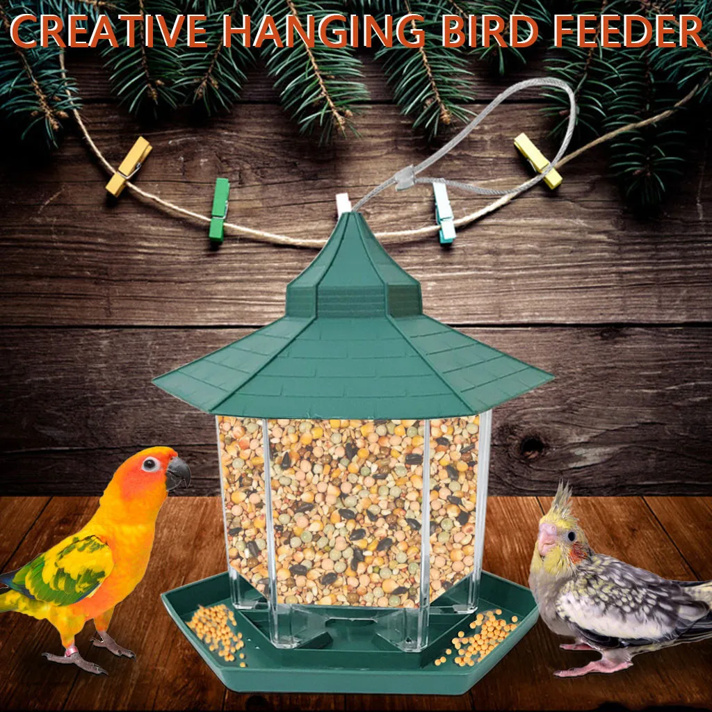 Поставляется полностью собранным и готовым к висению. Благодаря форме Шестиугольника кормушка для птиц имеет наклонную крышу для затенения птиц от солнца и дождя. Когда семена будут съедены, больше семян будет естественно заполнять лоток.