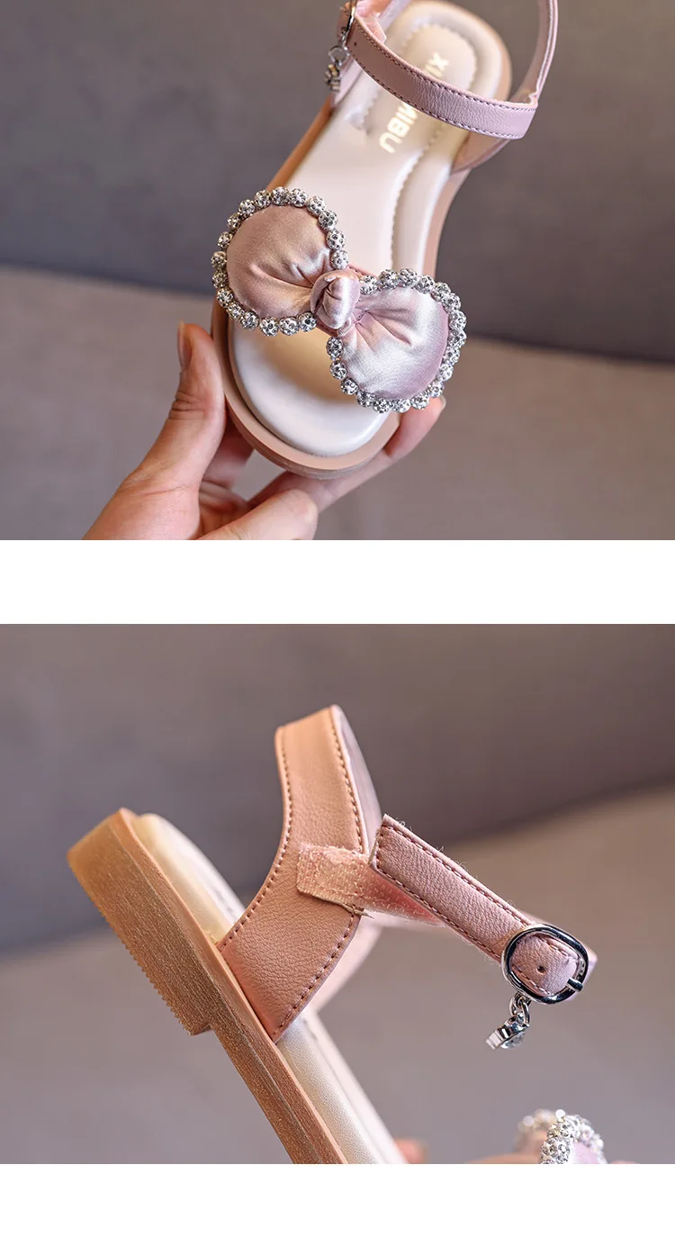 2020 летние детские сандалии принцессы; черные сандалии с бантом для маленьких девочек; детская обувь со стразами; модные пляжные сандалии; брендовая мягкая обувь на плоской подошве