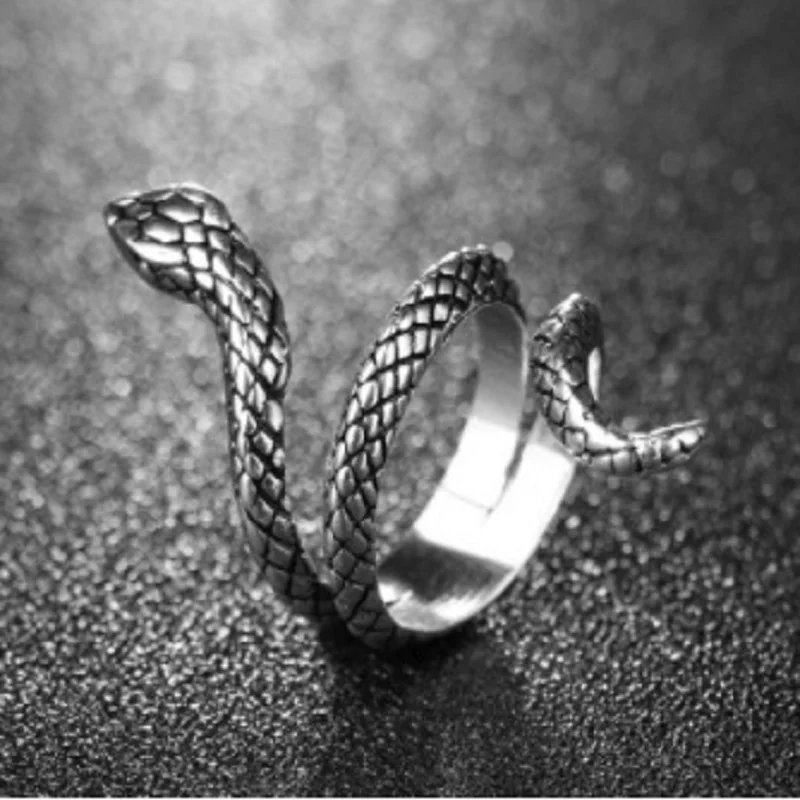 Серебряное кольцо в стиле ретро с изображением жареной змеи