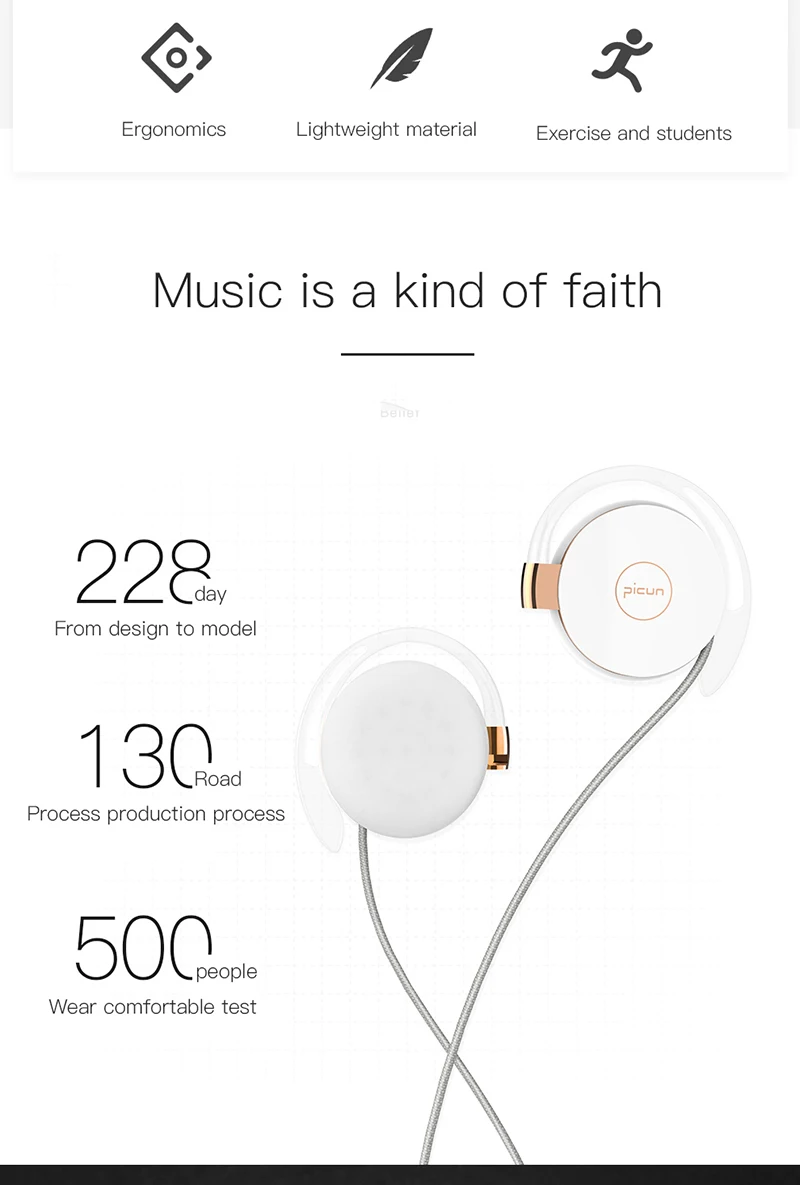 Picun L1 Stereo Ear Hook Sport Earphones for Smart Phone with Microphone Headset HiFi Running Headphones Volume Control Earpiece