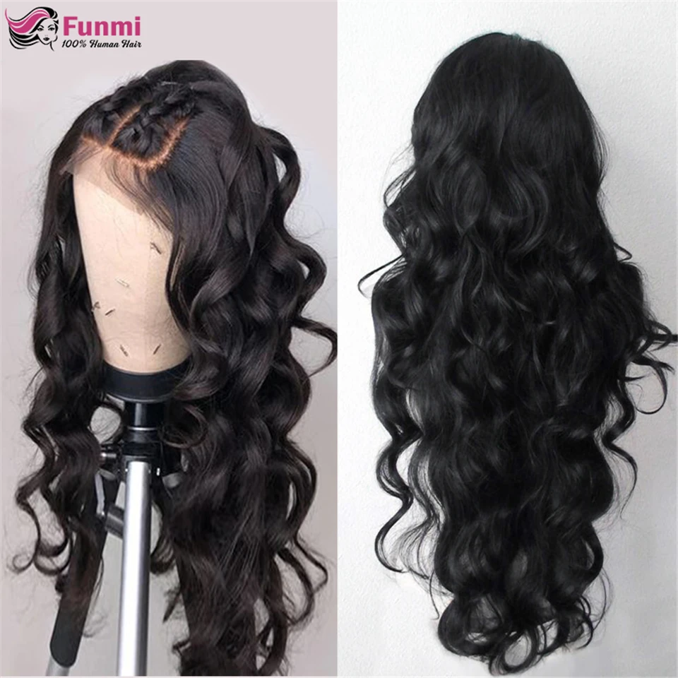 Парик с волнистыми волнами, бразильские парики с фронтальным кружевом, парики из человеческих волос, предварительно выщипанные волосы для детей, человеческие волосы Remy, парики для черных женщин, передний парик