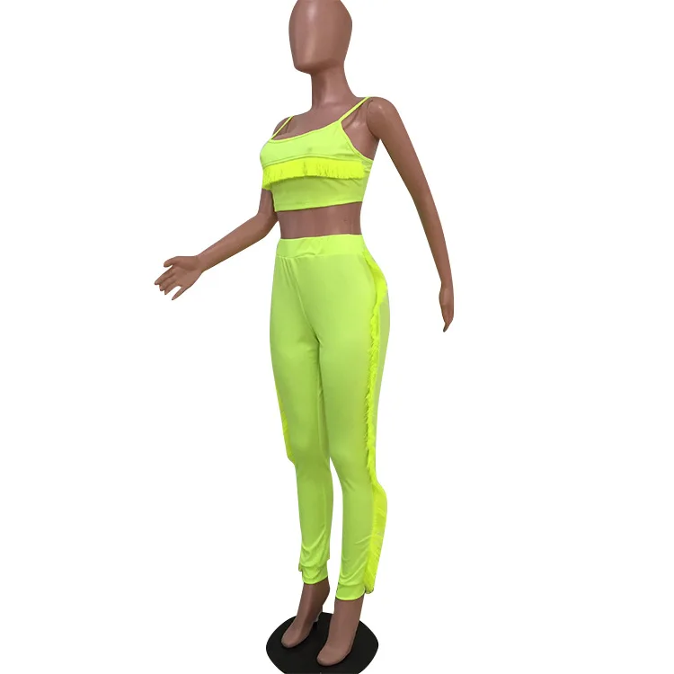 Adogirl Женский комплект из двух предметов с кисточками, укороченный топ на бретельках, узкие брюки, женский модный повседневный костюм, летняя одежда
