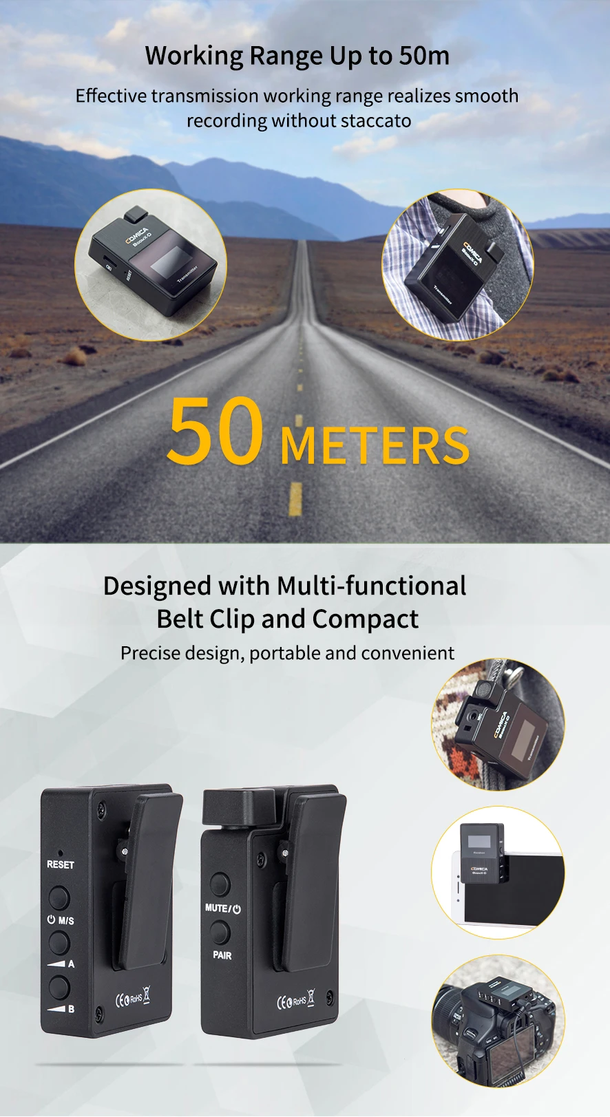 工作范围可达 50 米