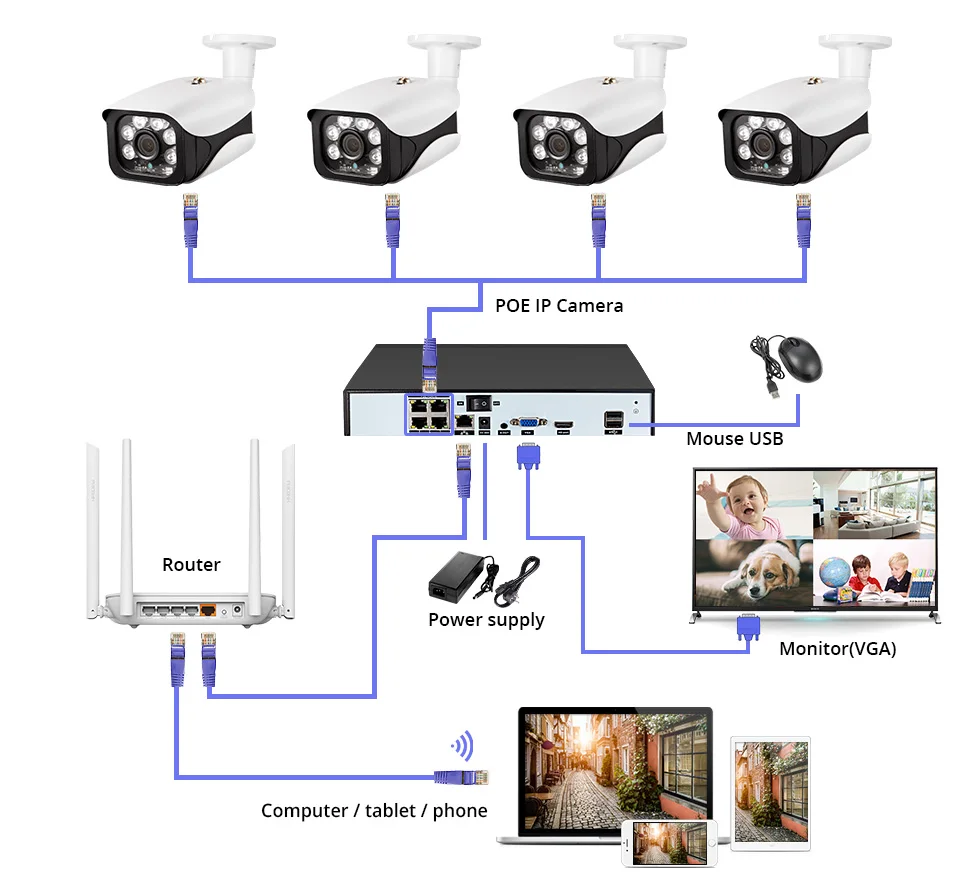 Для передачи видеосигнала и одновременного питания камеры необходим только один Ethernet кабель, поэтому вам не нужно использовать отдельный адаптер питания для подключения каждой камеры к ближайшему источнику питания. Безопасная, Стабильная и надежная передача питания всегда гарантируется.
