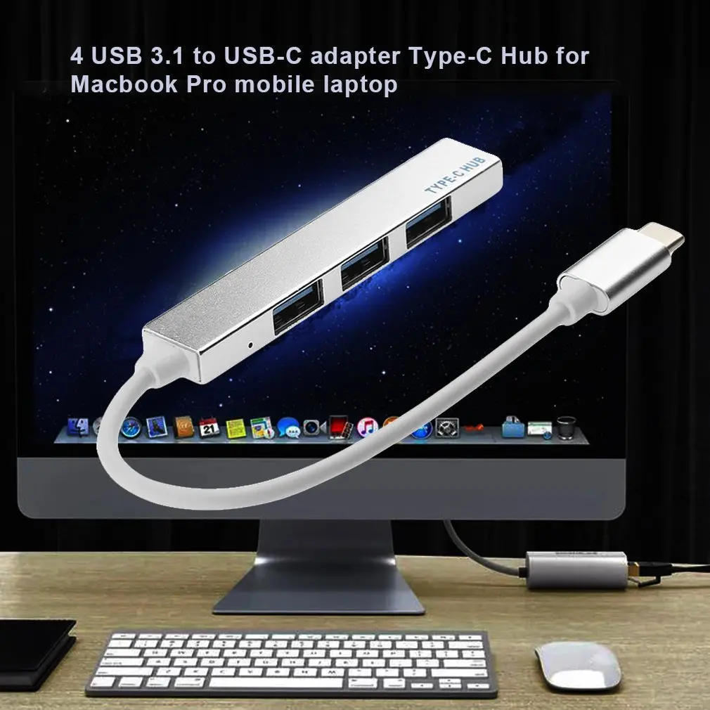 Дополнительные порты: usb-концентратор C удобно подключается к новейшим ноутбукам MacBook, MacBook Pro или Type-C Windows и мгновенно добавляет дополнительную функциональность 4 портов USB 3,1.