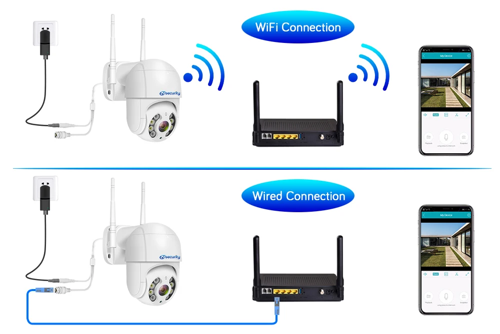 Камера ZYsecurity WiFi PTZ имеет усиленный уровень маршрутизатора 5 дБ, полностью медная основная антенна, 1 антенна = другая 3 антенна, не только поддерживает WiFi, но и поддерживает точку доступа и Lan, вам больше не нужно карабкаться, чтобы получить карту или соединительный кабель.