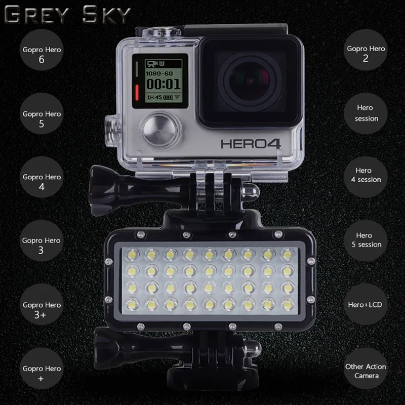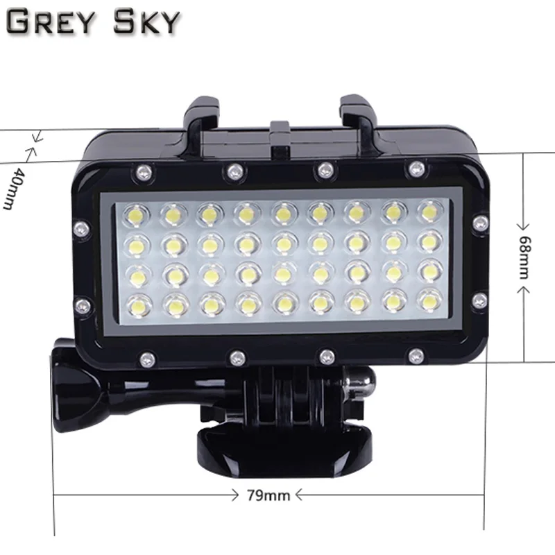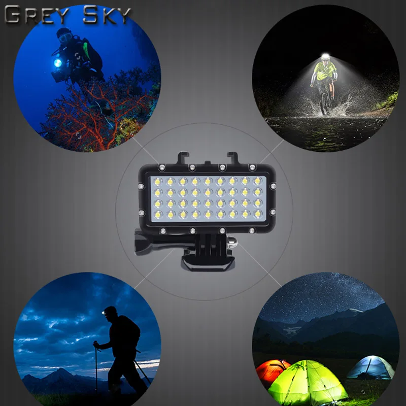 Product: Dive Light Suitable for: Gopro max 8 7 6 5 4 3+Session Xiaomi Yi 4K+ Yi Lite Mijia SJCAM Series EKEN and so on Sport Camera Interface Type: USB Interface Waterproof depth: 147 feet (45m) Lighting Perspective: Wide Angle 500 Lumen Max Lighting size: 5500K~6000K Battery: 1050mAh rechargeable battery Led: 36 Leds Multi-mode random switching: Normal mode: 1.5 hours Power saving mode: 4 hours Flash mode: 6 hours This lamp can be used with a headgear/chest strap/bicycle stand/motorcycle bracket. It can be used not only underwater but also on land, such as nighttime cycling, running, camping, etc. Each waterproof lamp has undergone a strict waterproof test, you can safely choose!