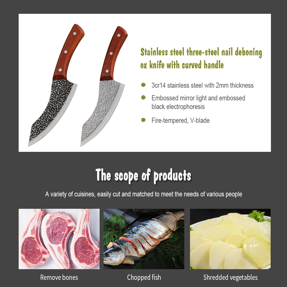 Knife Type:Boning knife Metal Type:high carbon clad steel Total Length:278g Blade Length:160mm Handle Material:Wood+Rivet fixing Weight:About 150g
