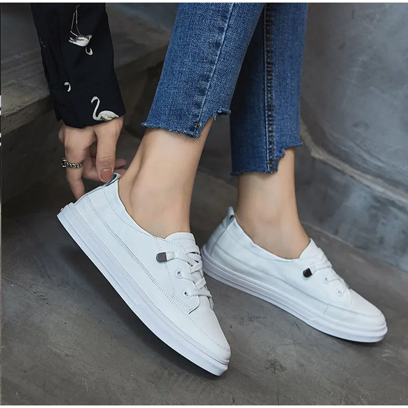 2018 Летняя женская повседневная обувь из натуральной кожи на плоской подошве