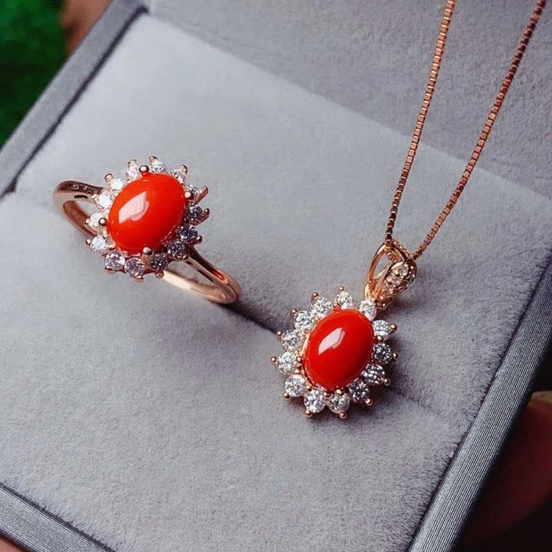 Наименование изделия:Классический Серебряный красный коралловый Ювелирный Набор 925 пробы для повседневной носки