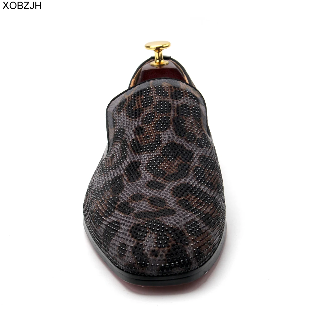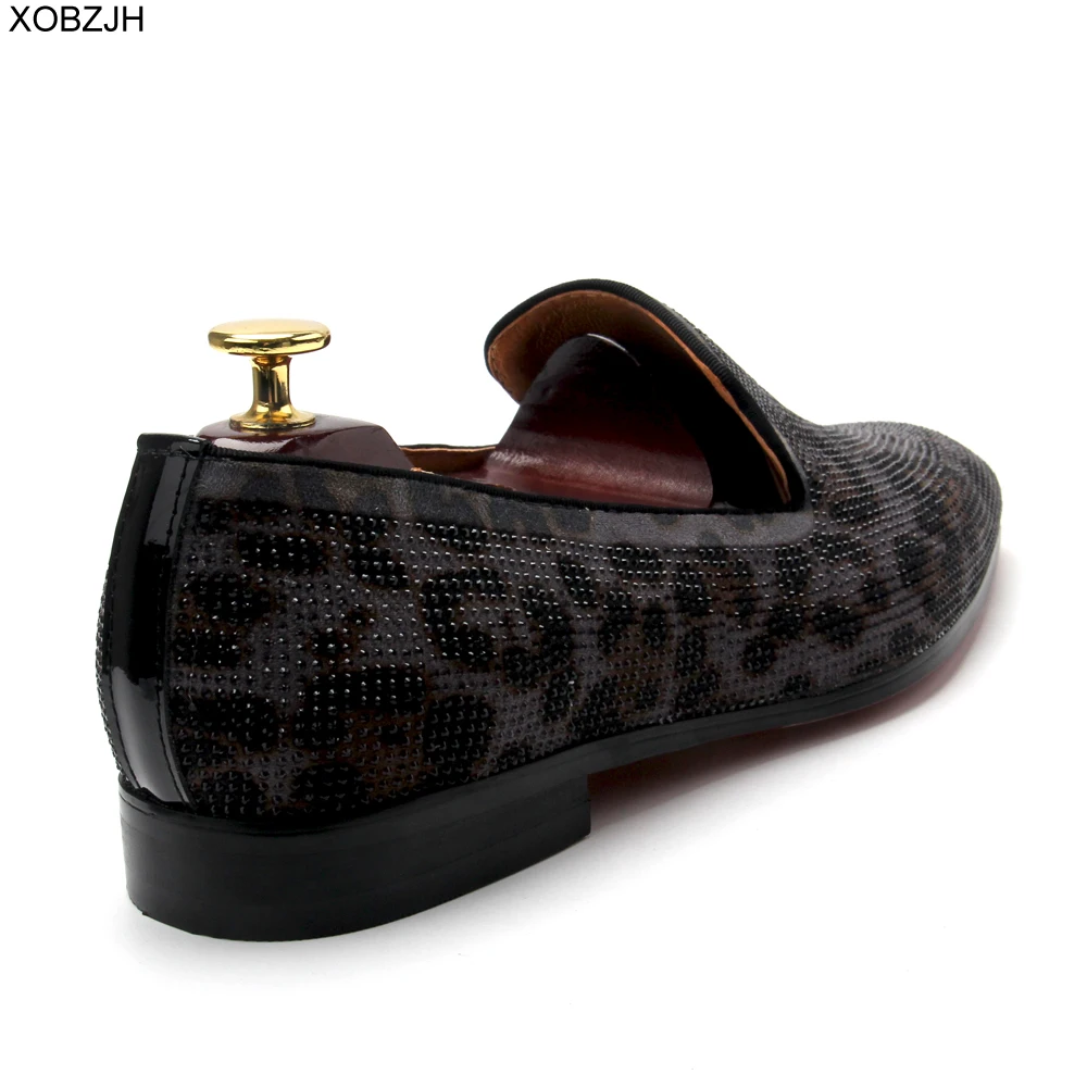 Men Luxury Wedding Dress red bottom Shoes Designer Leopard Rhinestone Black Fashion Party Shoes Men High Quality Plus Size Shoes
