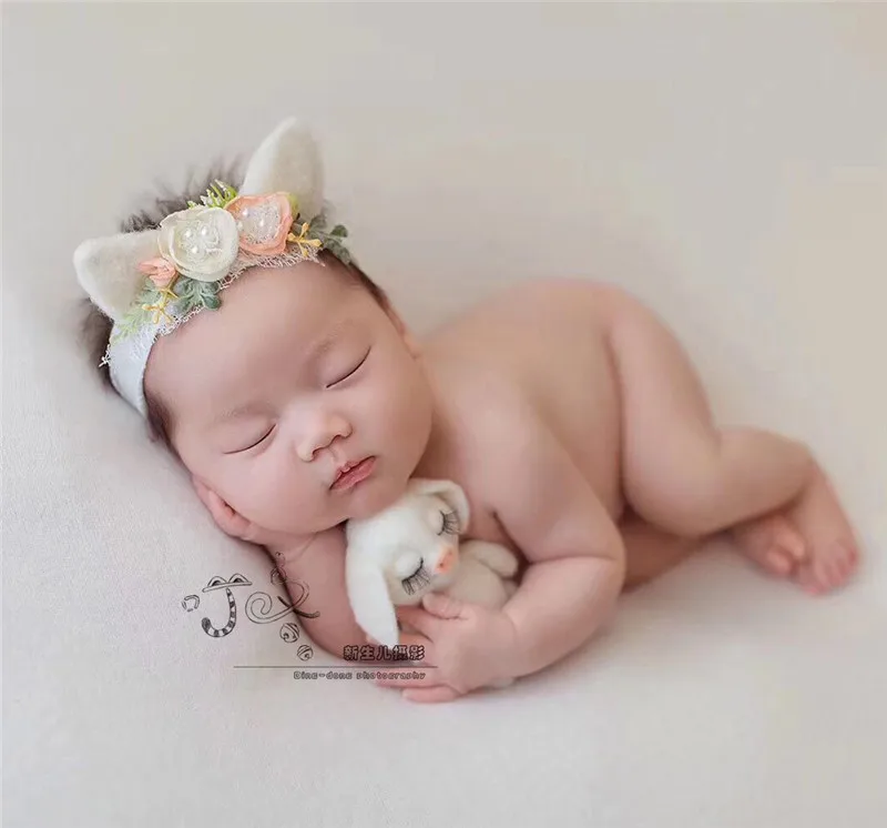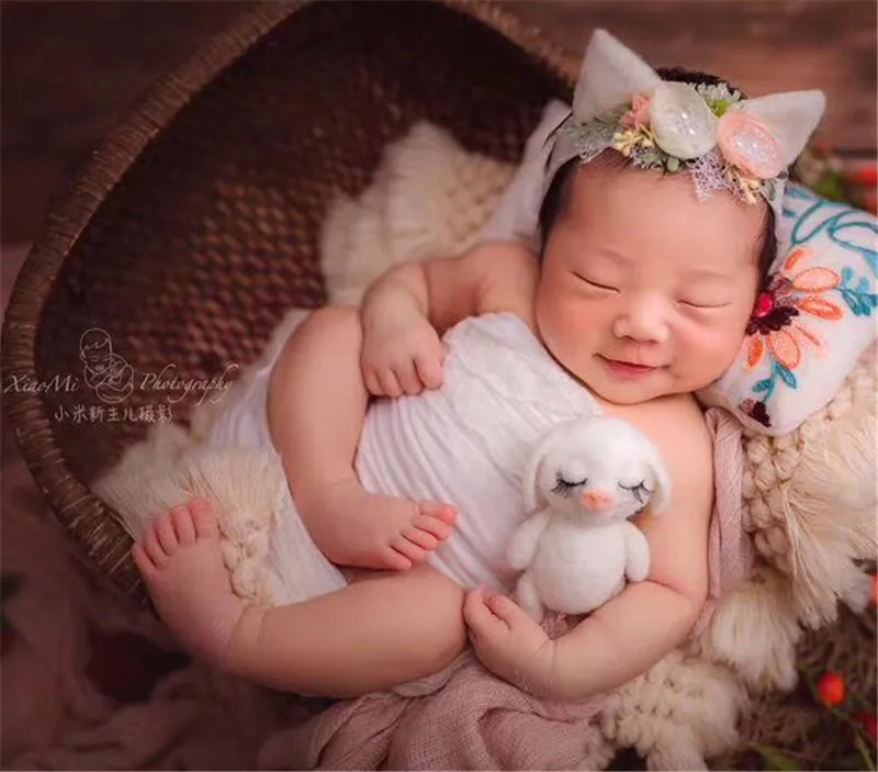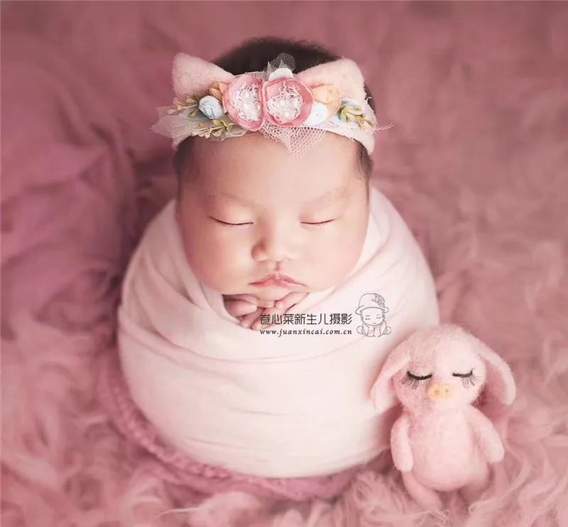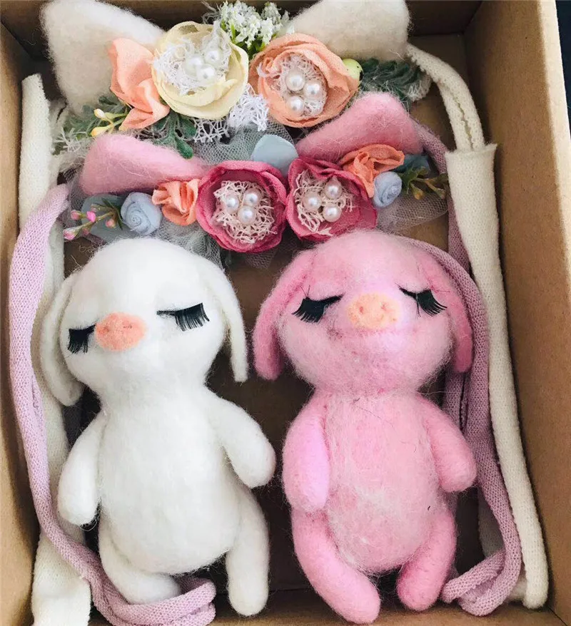 Аксессуары для фотографирования новорожденных ручной работы из шерстяного войлока, кукла свинка, цветочный головной убор, студийный реквизит для фотосессии новорожденных