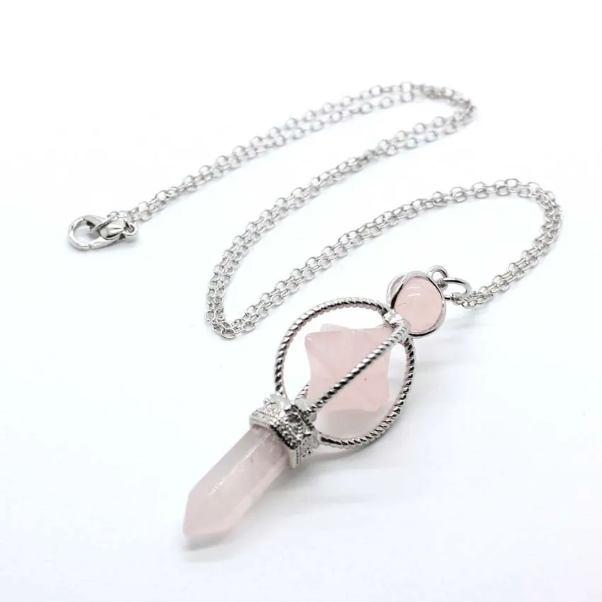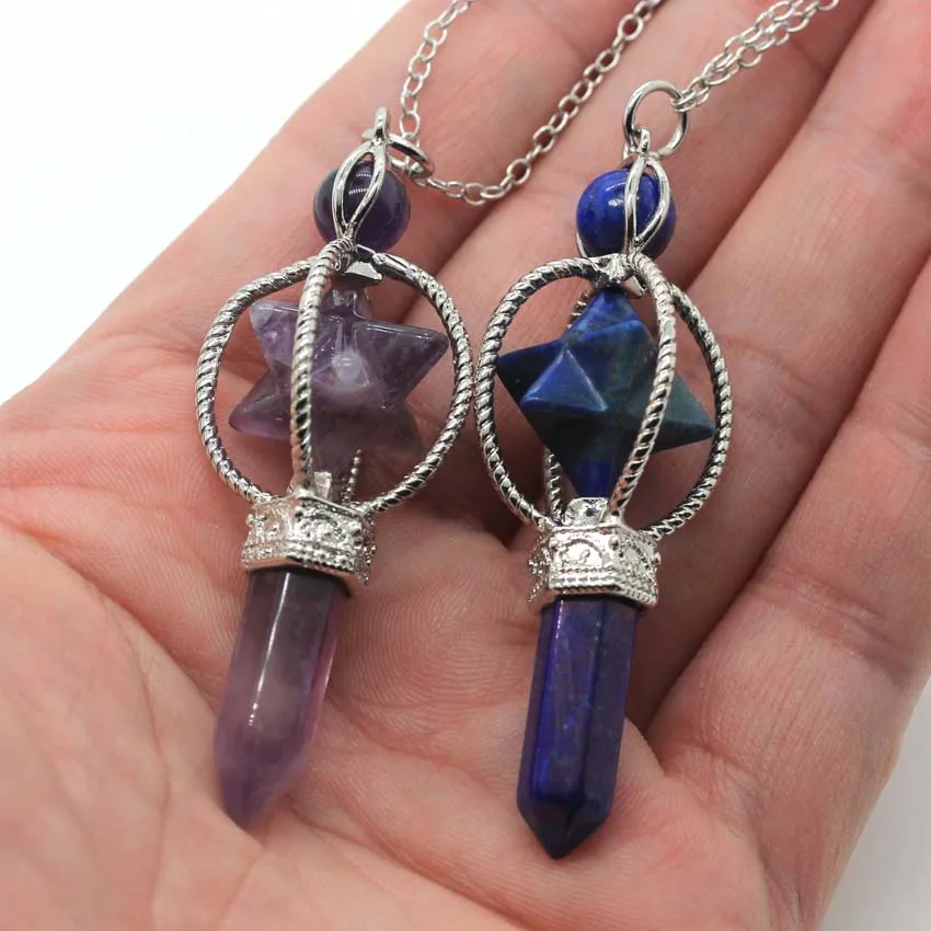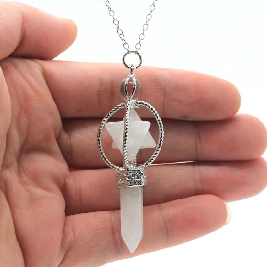 KFT натуральный камень кристалл кварца Меркаба медитация чакра Сакральная рейки шестиугольная маятниковая Подвеска для женщин и мужчин ювелирные изделия