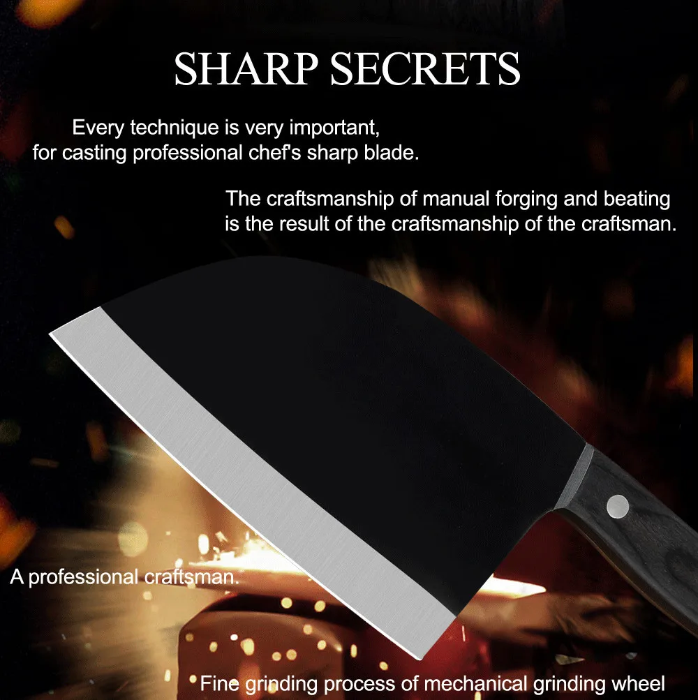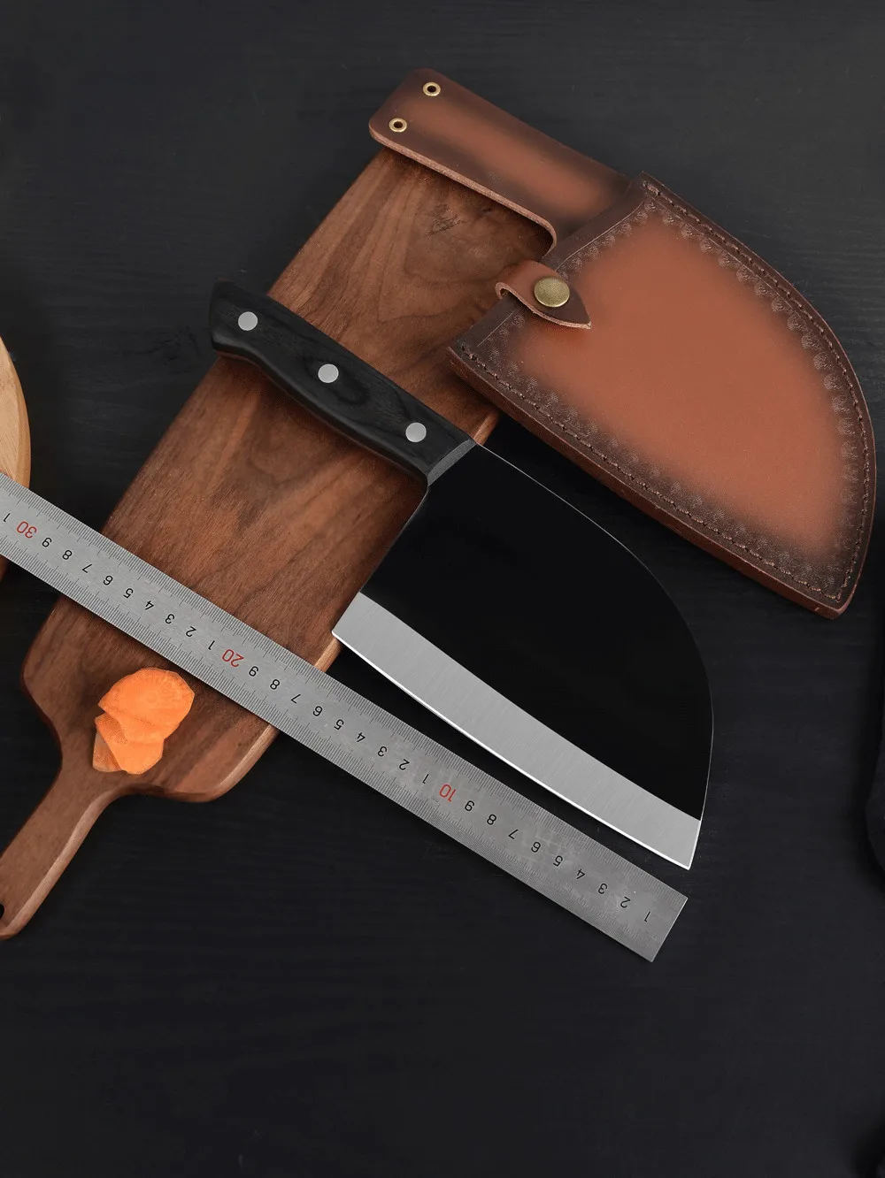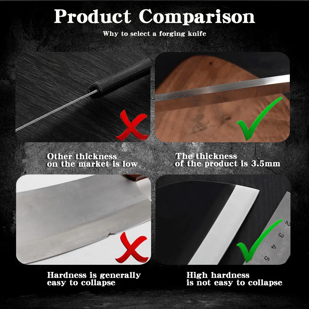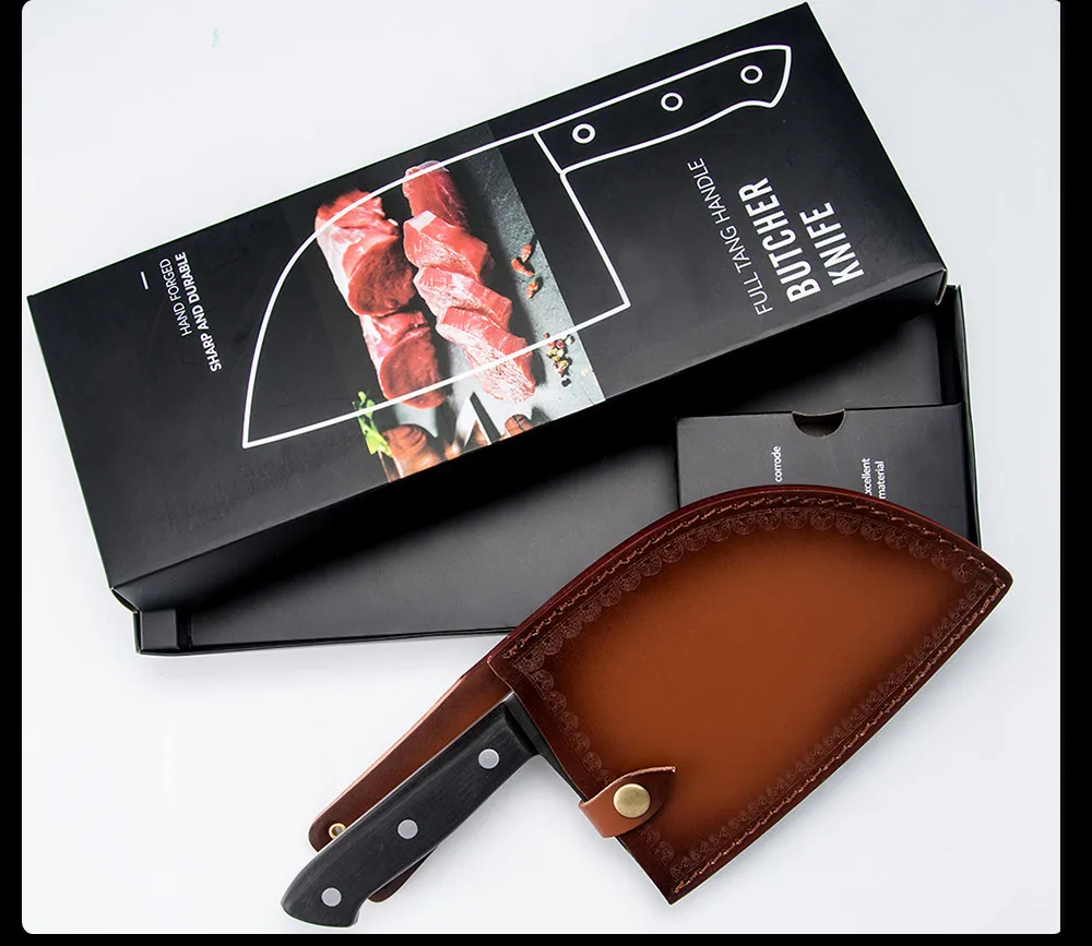 Этот нож шеф-повара мясника изготовлен из нержавеющей стали 7cr17, ручка и лезвие интегрированы без пайки, который является прочным и прочным для устранения сломанной ручки