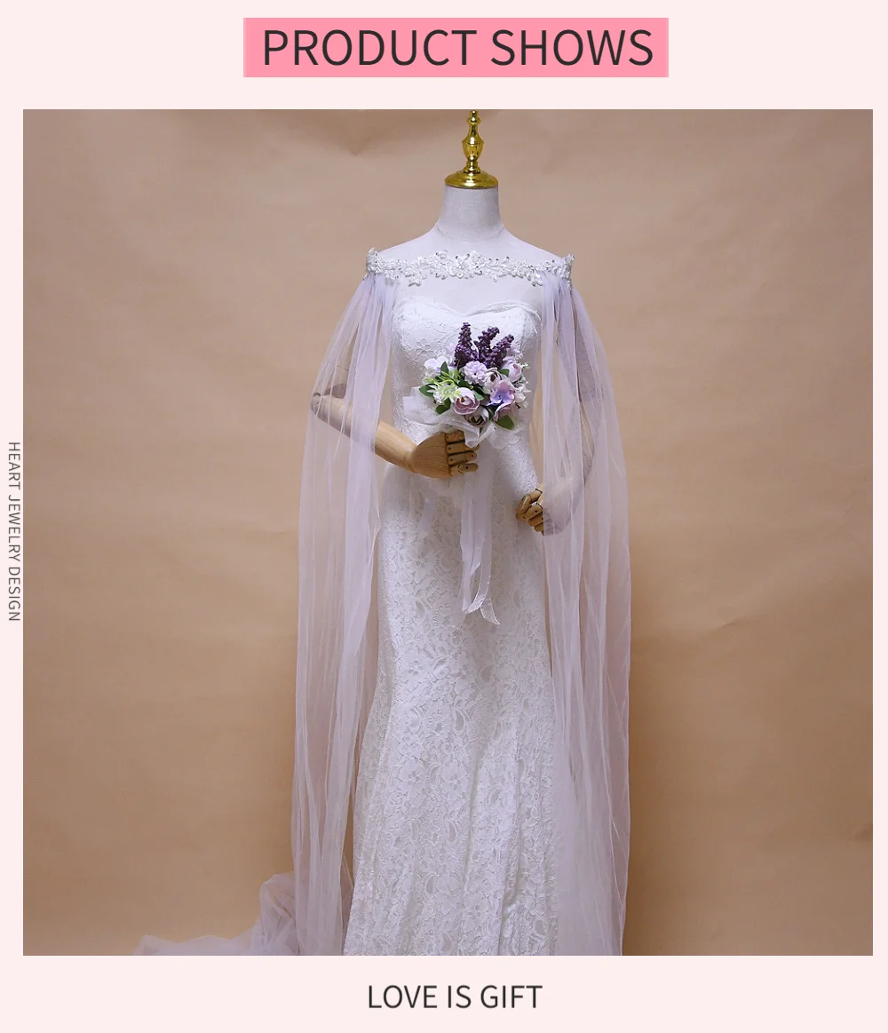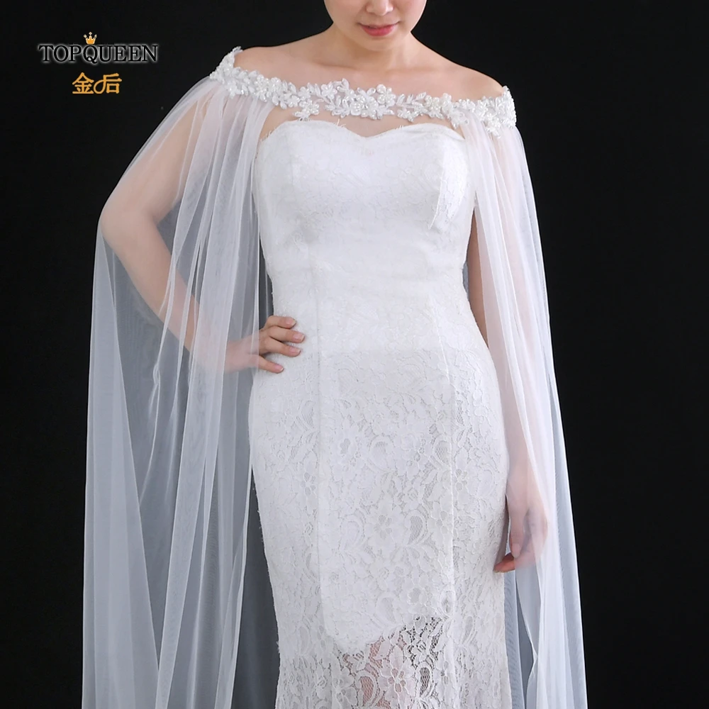 TOPQUEEN женские длинные накидки для свадьбы, украшенные жемчугом, шифон 300 см, белый цвет слоновой кости, Свадебные Шали, обертывания для торжественной вечеринки G26