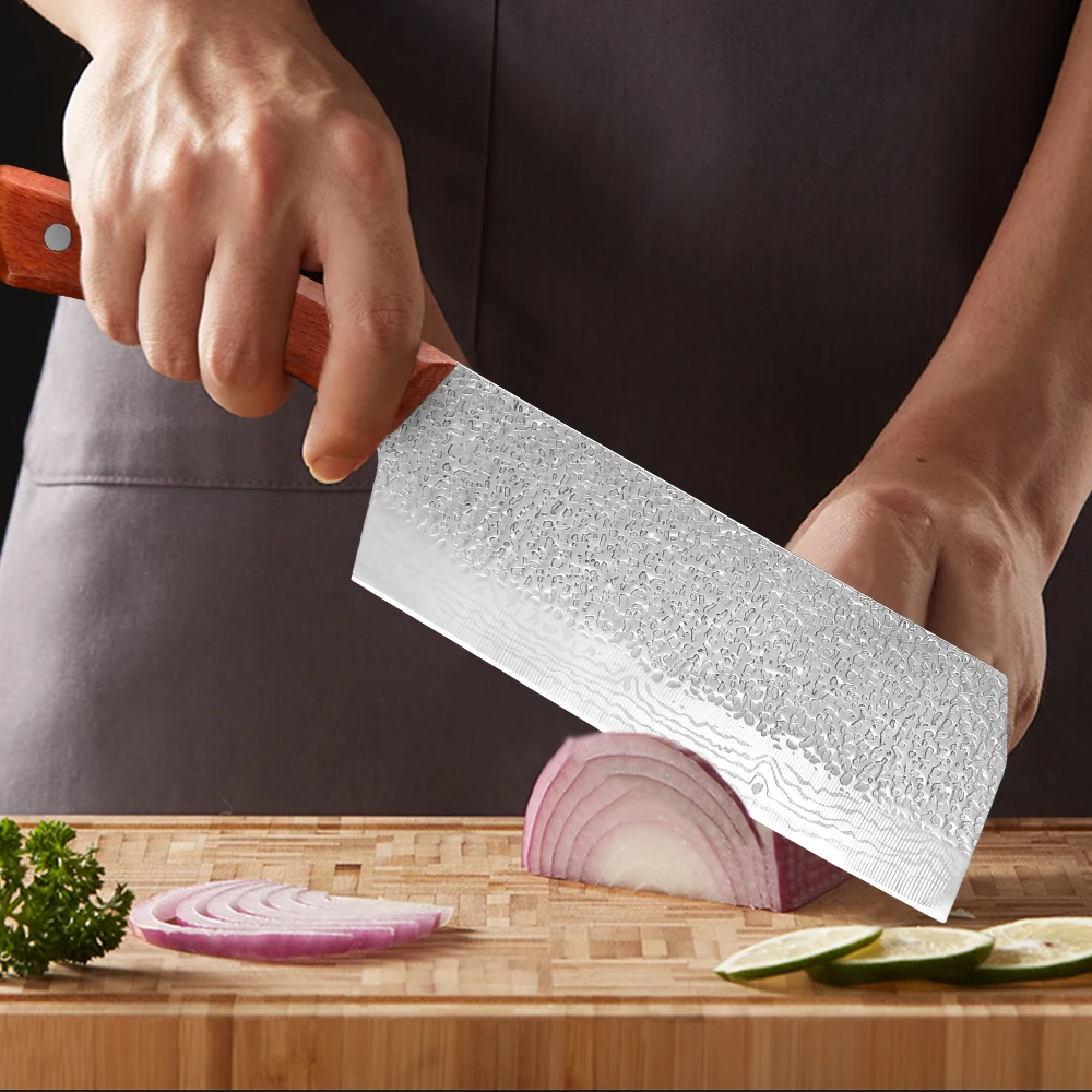 The knives are sharpened manually by workers with more than 30 years of experience by using natural knife grinders mined from Mount Emei. Compared with kitchen knives made with mechanical ways, the service life of such knives is longer.Due to the quenching skill made by experienced workers and unique forming technology with different heating methods, the equilibrium between the rigidity and tenacity of such knives is guarantee to make them more durable.