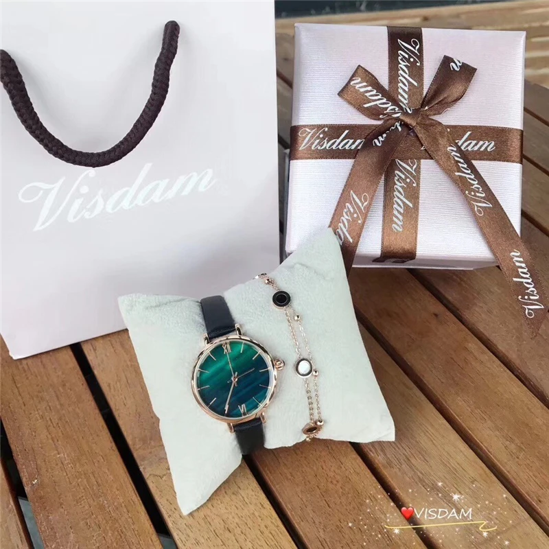 Ins, хит продаж, брендовые, RL, хит продаж, ювелирный набор, 2 вспышки, saphire, синий, зеленый, малахит, звездное небо, черные кварцевые часы и браслеты, подарок, famale