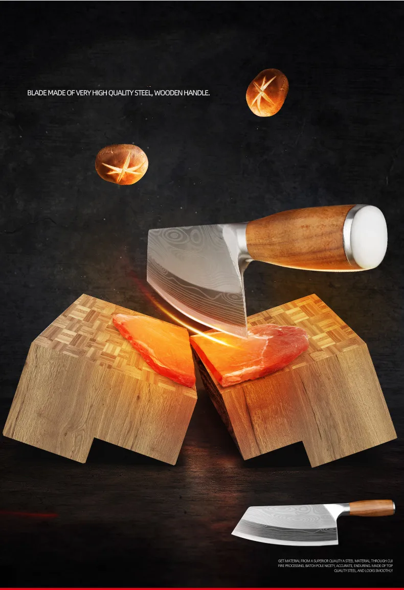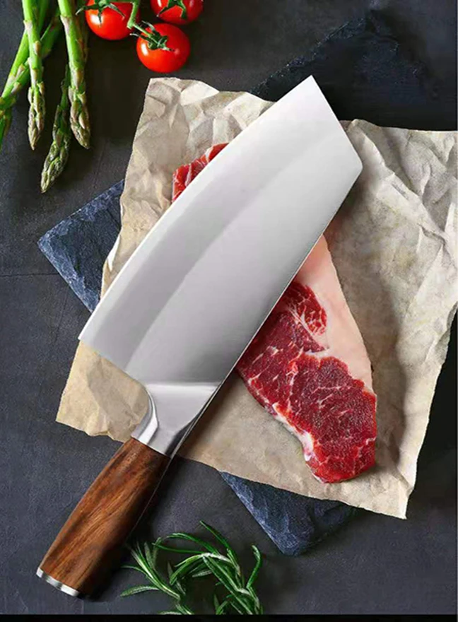 Нож изготовлен из нержавеющей стали 40Cr13, прочный, антикоррозийный балд, удобная ручка, вы можете использовать его для резки мяса, овощей, рыбы, сашими и т. Д.