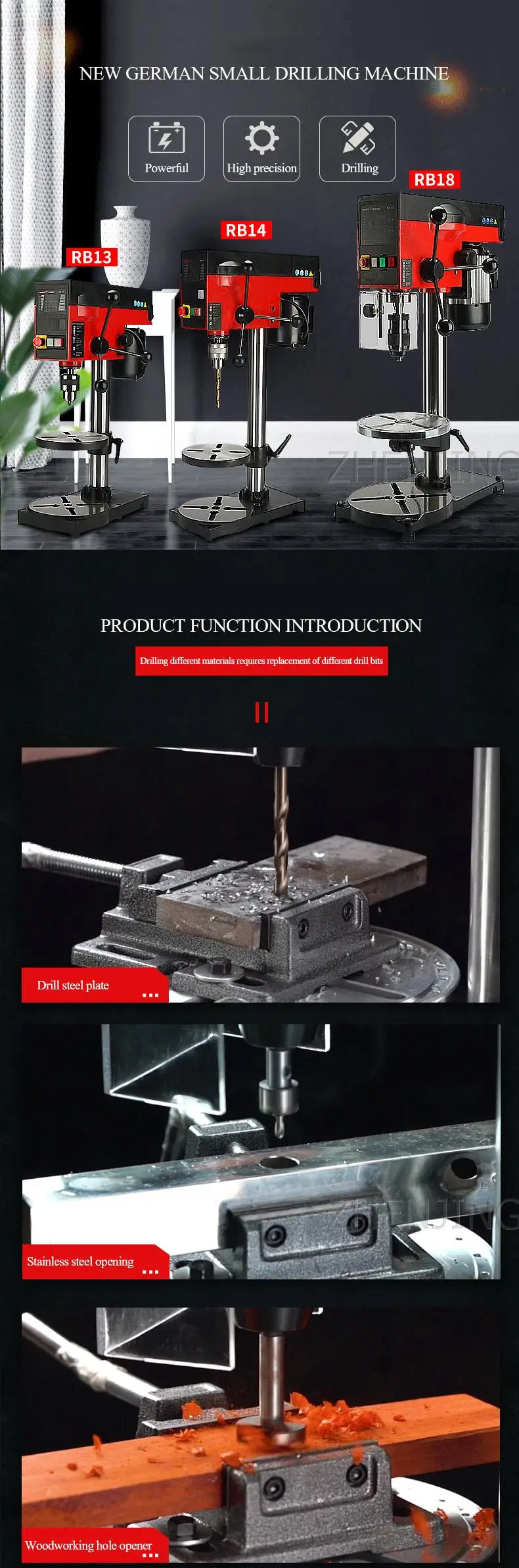 Маленькая скамья дрель 220 В домашняя многофункциональная Высокая точность Германия Плавная Скорость Изменение миниатюрный сверлильный станок металлическое сверление