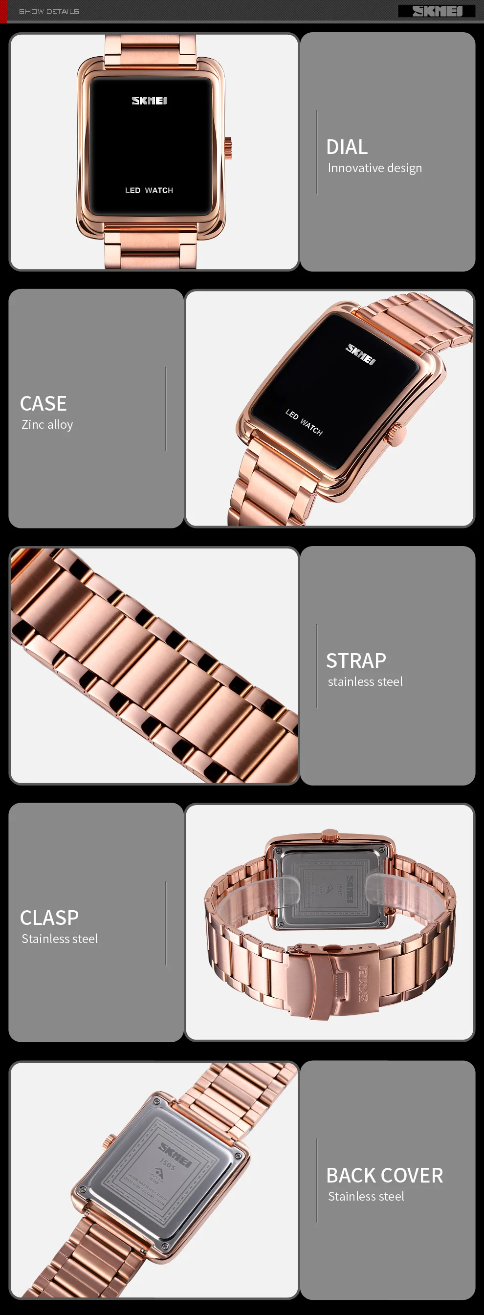 SKMEI Men's Gigital Watch Luxury Brand Men Watches Stainless Steel LED Light Display Electronic Watch For Mens Waterproof Clock