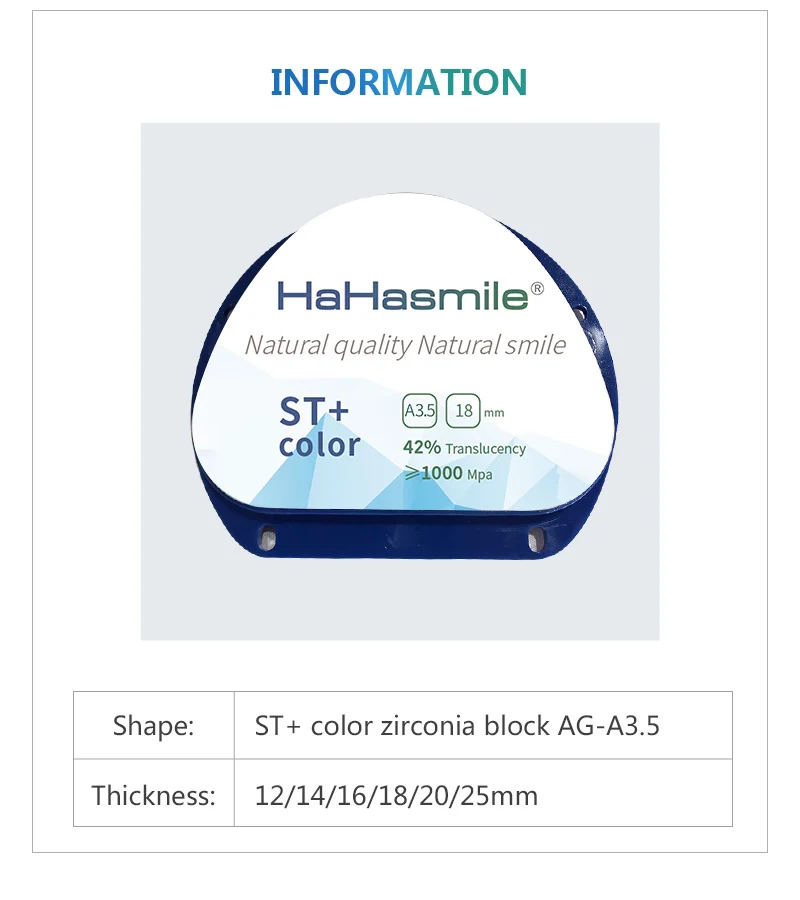 Hahasmile блок пустая Высокая 42% прозрачность CAD CAM стоматологический предварительно затененный Цирконий AG Vita16 оттенки циркония ST + цвет циркония A3.5
