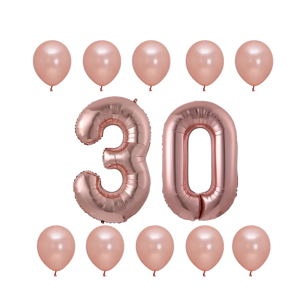 12 шт./лот, 30 Вт, 40 дюймов розовое золото номер фольги воздушные шары с гелием 30th лет День Рождения вечерние надувной 10 "латекс Globos