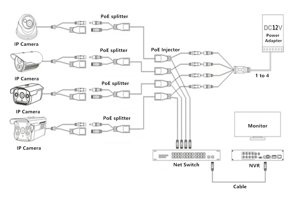 Особенности1.Для ip-камеры, беспроводной точки доступа и других устройств2.Поддерживает 5 В, 12 В, 24 В, 48 В, 52 в2.PoE инжектор и сплиттер с 5,5*2,1 мм DC jack / plug