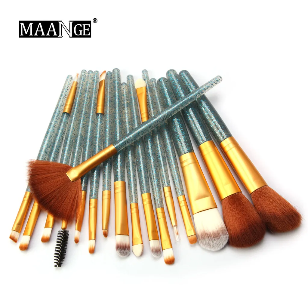 MAANGE 18 шт макияж Набор кистей, синтетический Блестящий прозрачный набор кистей для макияжа с высоким подъемом Качество. От румян кисти до кисти для оконтуривания, вы найдете все, что вам нужно В этом разнообразном наборе!