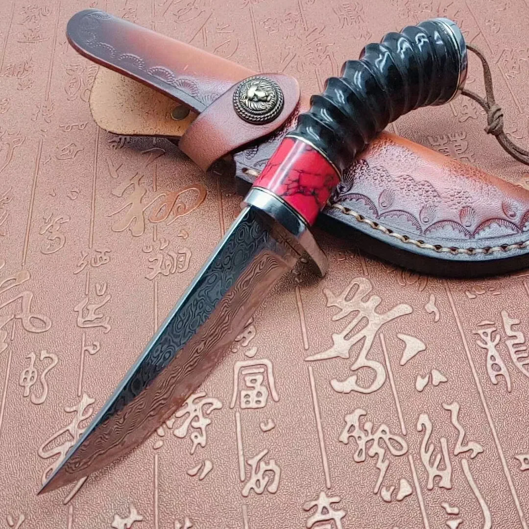 Дамасские рога, черный коготь ручной работы, дамасский кованый стальной нож, стальной нож, охотничий нож, Подарочный нож