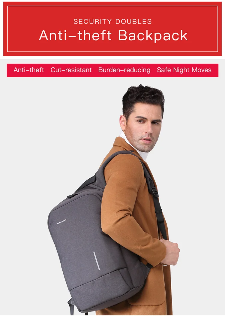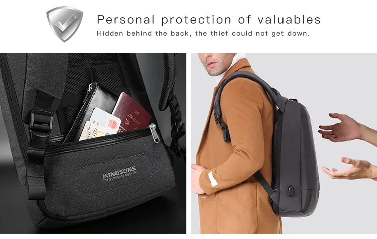 Kingsons KS3149W 13'' 15'' External USB Charging Laptop Backpacks School Backpack Bag Men Women Travel Bags