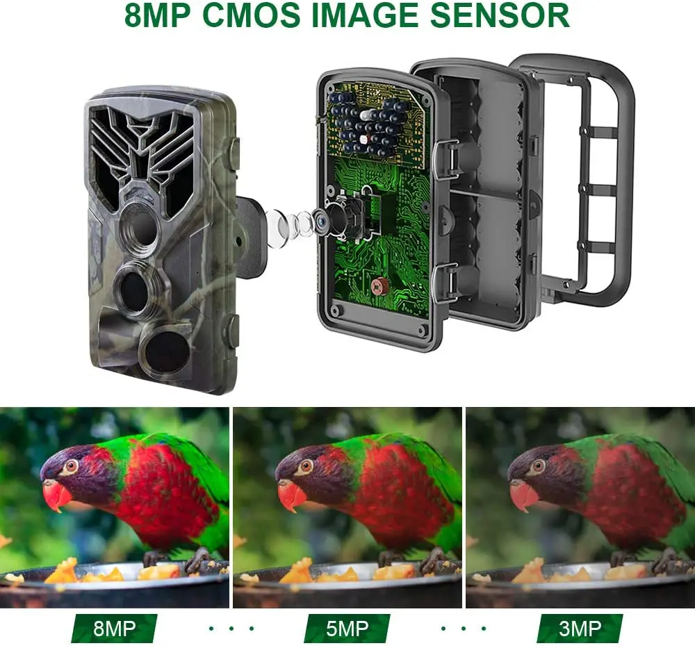 С IP65 водонепроницаемый, прочный чехол защищает вашу охотничью камеру от дождя и пыли. А также может работать в жестких условиях, таких как пустыня или тропический лес. Он содержит монтажный ремень, его легко установить везде, куда направляется камера для дикой природы.