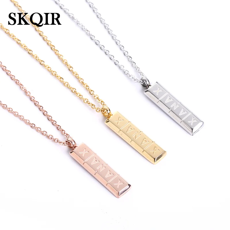 Personalized Vertical Pill Bar Pendant Necklace ID Stainless Steel Women Charm Choker Chain Necklace Gold Silver Color Jewelry