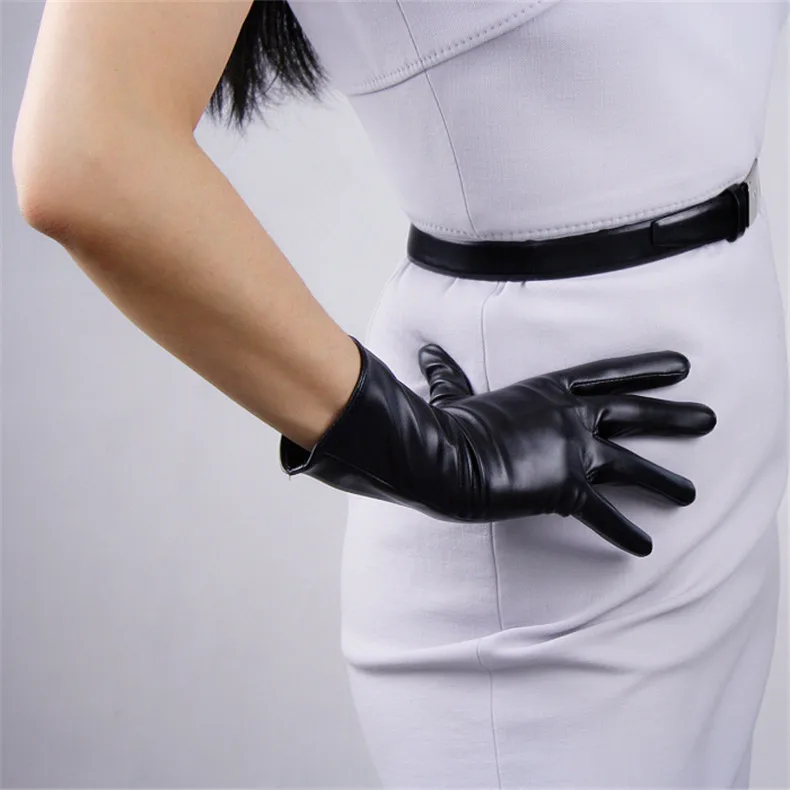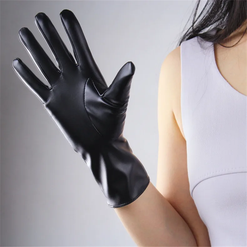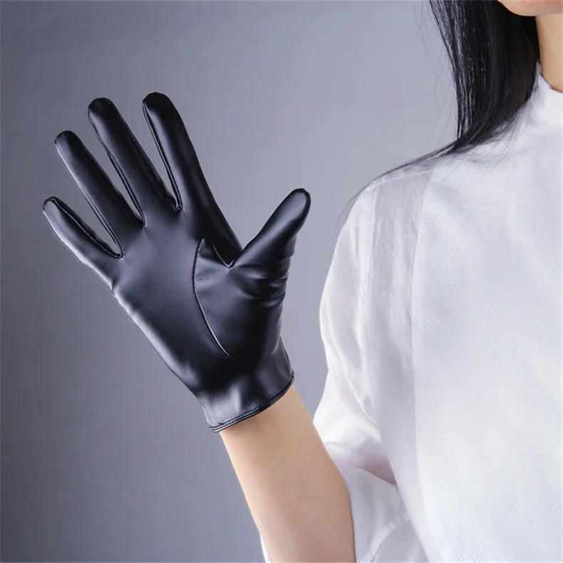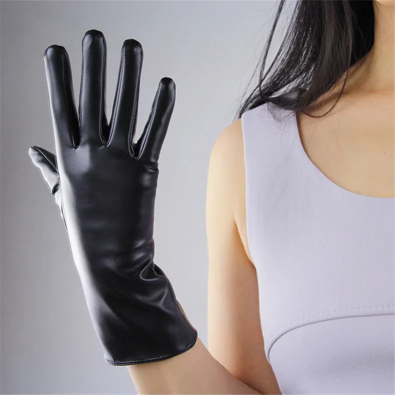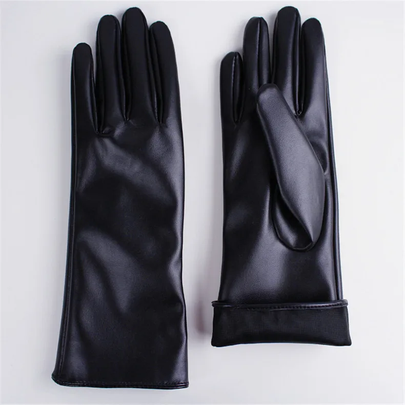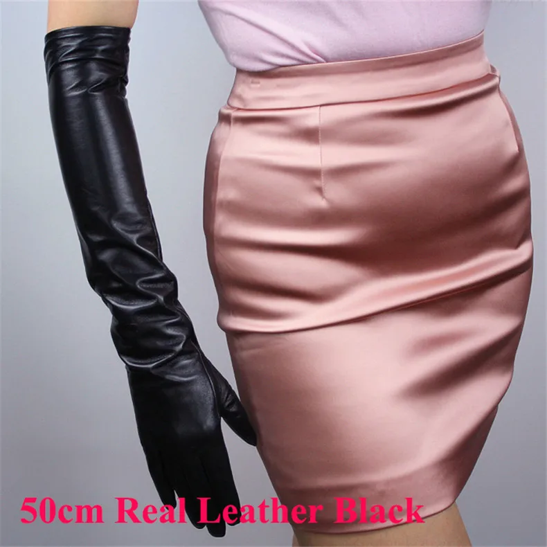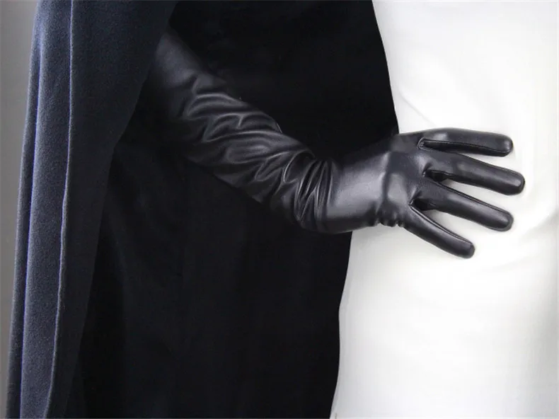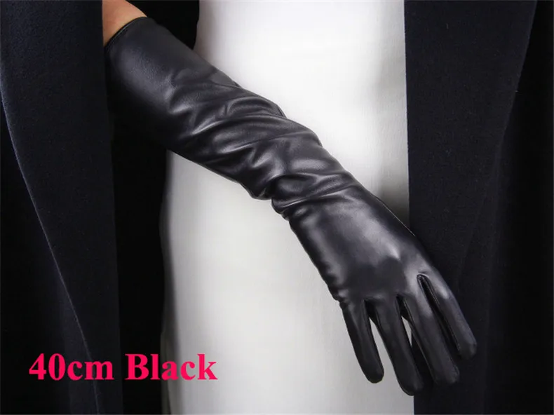 Extra Long Leather Gloves 70cm Faux Leather Sheepskin Matte Black PU Gloves Female Touchscreen Function WPU231