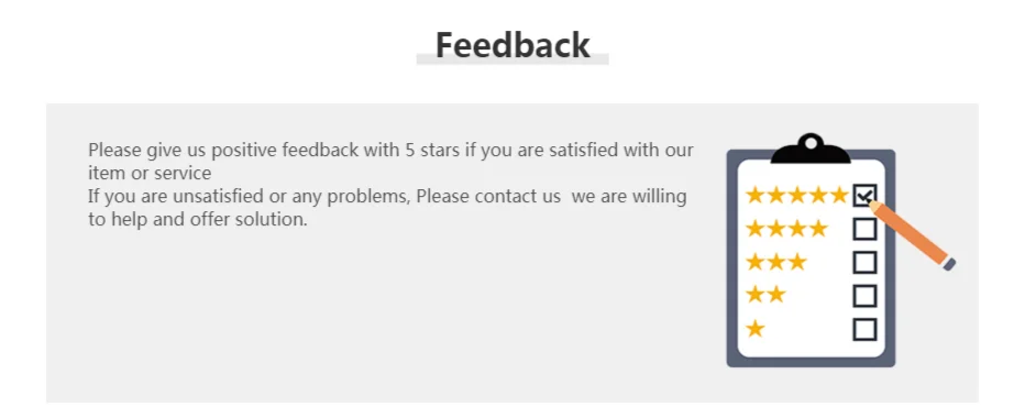 Уважаемый покупатель, если у вас есть какие-либо вопросы, пожалуйста, свяжитесь с нами. И мы ответим в течение 24 часов, кроме выходных. Если вы не удовлетворены нашим продуктом и обслуживанием, пожалуйста, свяжитесь с нами, прежде чем оставить отрицательный отзывы, тогда мы постараемся сделать все возможное, чтобы решить проблемы и сделать вас удовлетворенными.