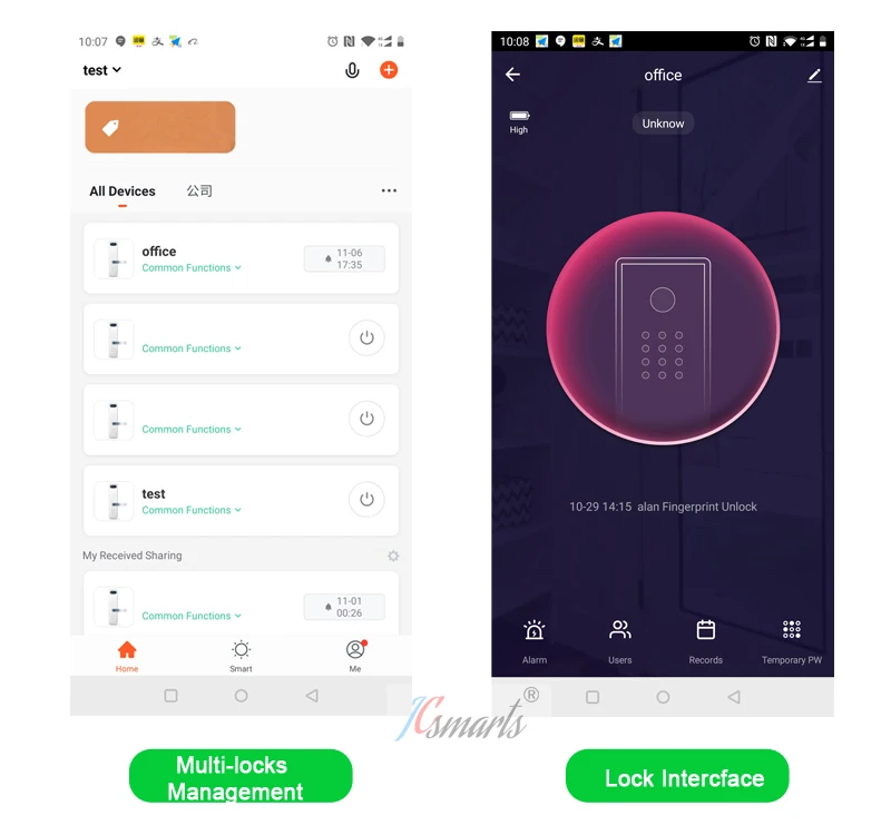 Одно приложение Tuya может управлять множеством замков.