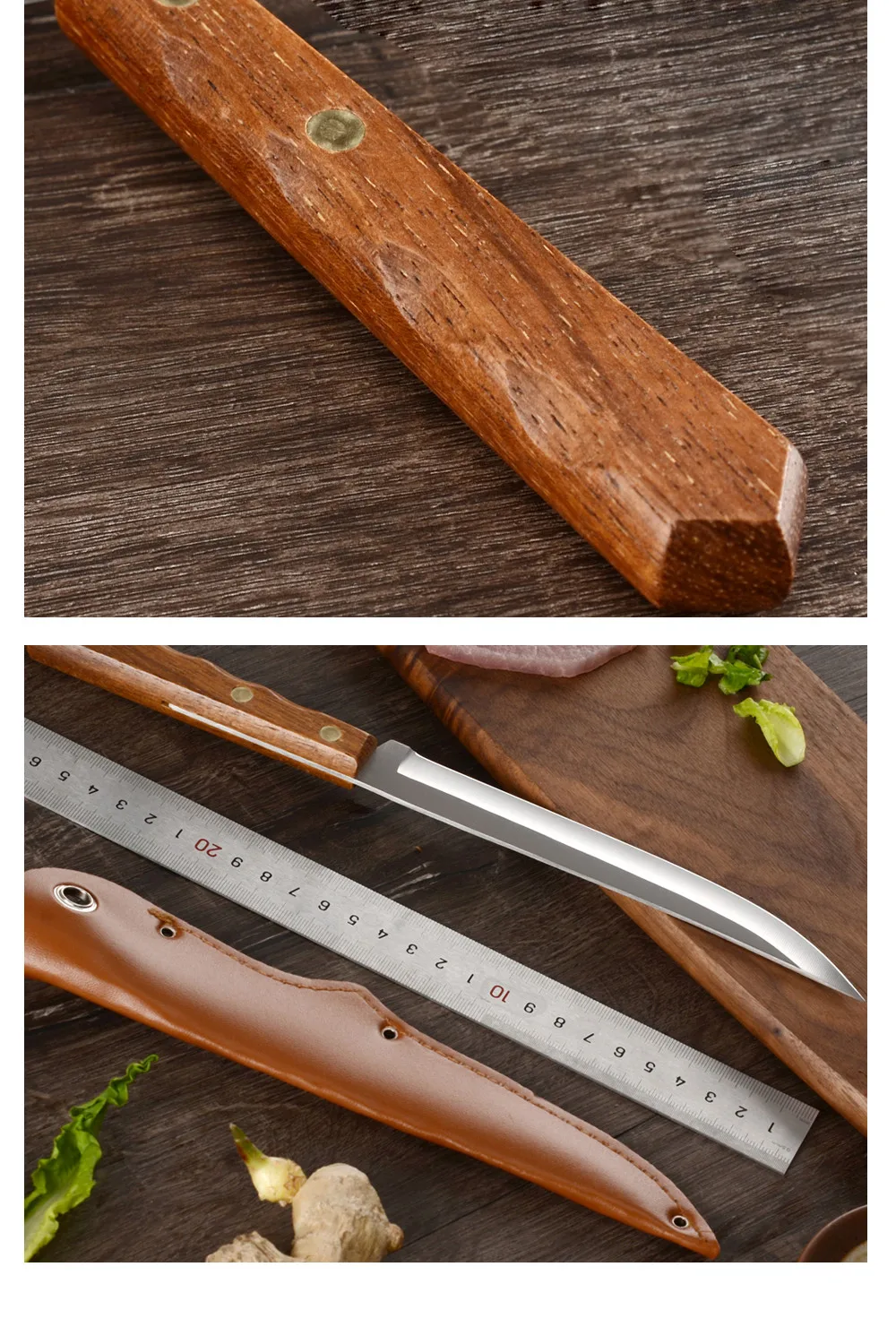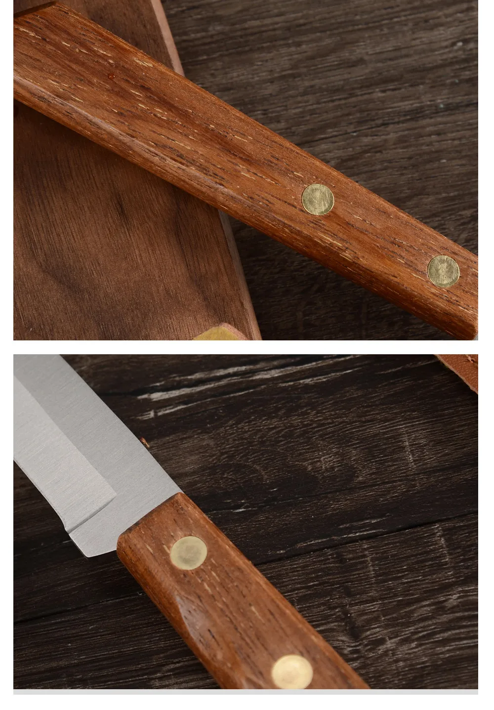 Вес: около 87 г Материал: марганцевая сталь Закалка всплеск: 780 градусов Температура: 180 градусов-200 градусов Материал: Кованая Высокоуглеродистая сталь ручной работы Характеристики: бритва острая для легкой резки костей Ручка: полностью интегрированный Стальной хвостовик + дерево + заклепки Производственный процесс: в закалки-закалки молота-закалки-зажима стали-молота-закалки и других операций непрерывного цикла.