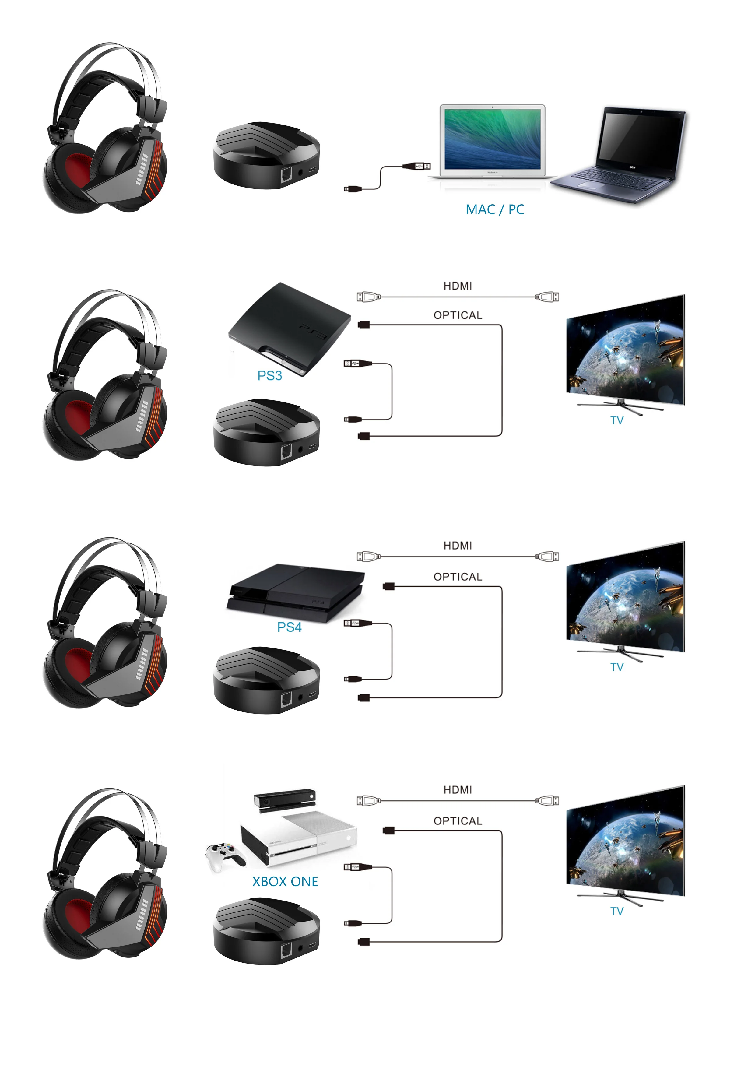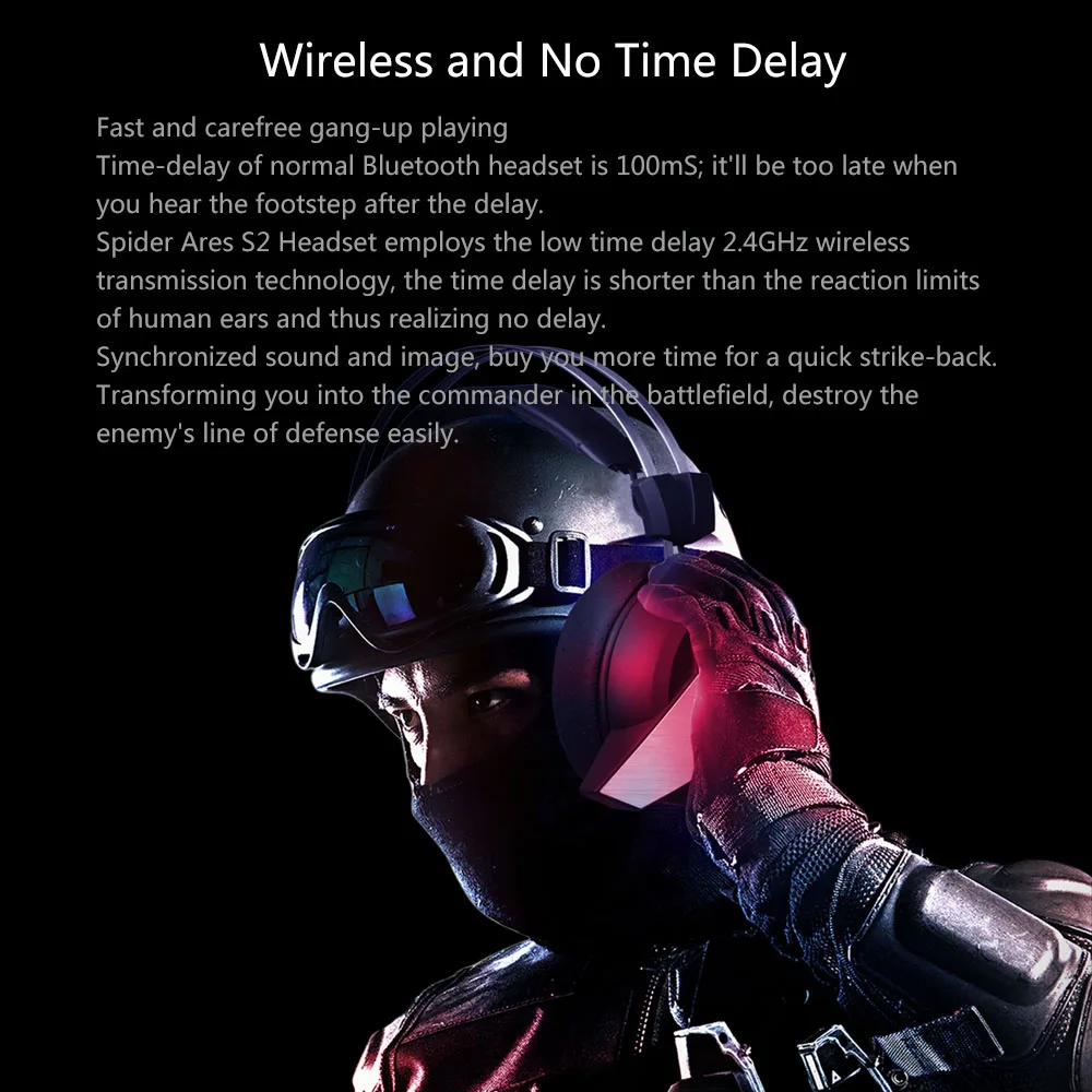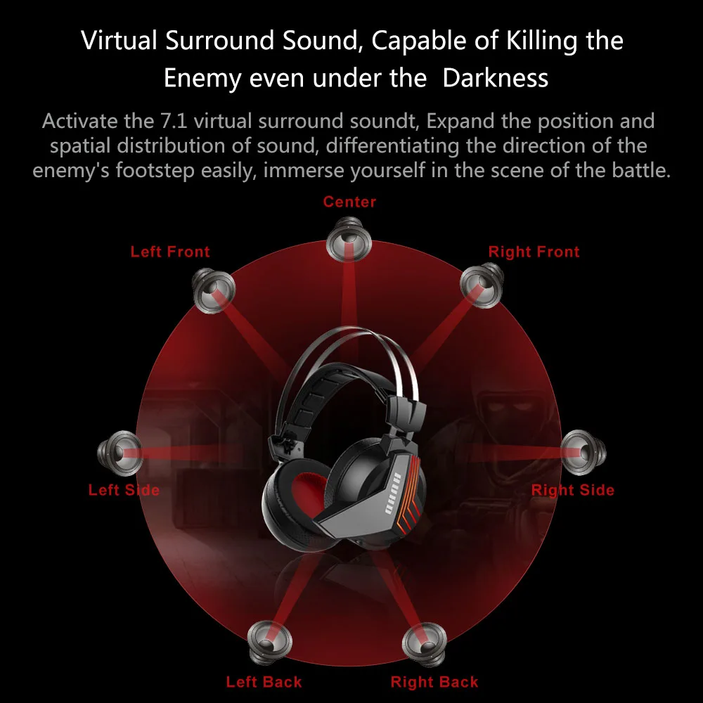 Звуковое сопровождение переключения -Нет необходимости устанавливать любое программное обеспечение, стереофонический звук и 7,1 виртуальный объемный звук можно переключать при коротком нажатии при рабочем состоянии. Подушка для уха со льдом -- От 2 до 5 °C ниже, чем у обычных гарнитур при комнатной температуре, он изготовлен из высококлассной белковой кожи, которая не создает заглушки; Общая техника штамповки, пена памяти, мягкое и нежное прикосновение. Кабель без хлопот -- DIGITAL WIRELESS TECHNOLEGY позволяет управлять наушниками на расстоянии 19-32 футов (6-10 м) метров от usb-передатчика-позволяет свободно перемещаться без кабеля во время игр. Сверхмощный аккумулятор, который работает -Наслаждайтесь вами и друзьями, лежа на диване с наушниками, играя в течение нескольких часов, нон-стоп-не было бы здорово! Теперь вы можете воплотить эту мечту в реальность, так как благодаря встроенной литиевой батарее нашего устройства вы можете использовать эти наушники в течение 10 часов! Высокое качество стерео звук -- 50 мм Графеновый динамик, который сделает ваш день ветерком-качество звука, которое сохранит Ваше душевное спокойствие. Удобный дизайн -Максимальный комфорт гарантирован благодаря легкому дизайну-наши конические прикольные амбушюры идеально подходят для длительной игры-микрофон бесшумный в любое время-стиль!