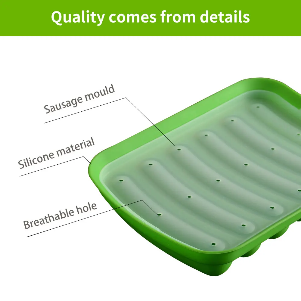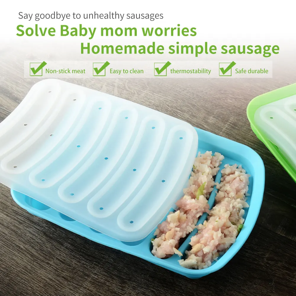 1.100% Абсолютно Новый и высококачественный пищевой силикон. 2. Изделие выдерживает Температурный диапазон: -40 ℃ ~ 230 ℃ 3. Он безвкусный, нетоксичный, Анти-пыль, прочный, Без проникновения, легко чистится. 4. Может использоваться в духовке, микроволновой печи и пароварке. 5. Вы можете сделать 6 колбас одновременно. Длина колбасы 11 см, диаметр 2 см. 6. Простая в эксплуатации форма, является вашим хорошим помощником для выпечки DIY, подарите ежедневный сюрприз вашей семье.
