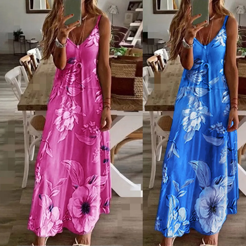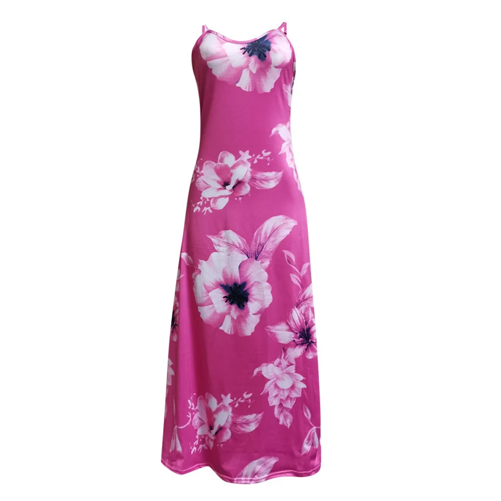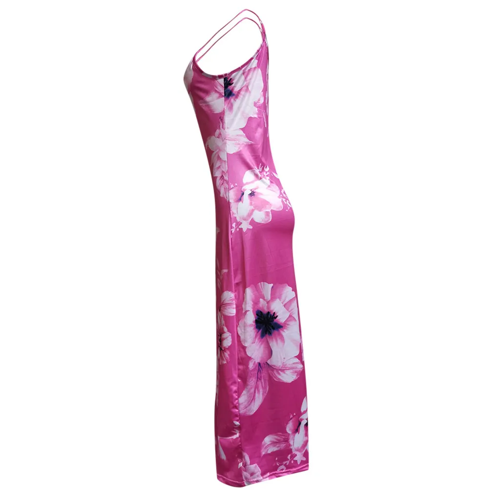 Женское сексуальное Повседневное платье без рукавов с цветочной печатью платье длинное платье