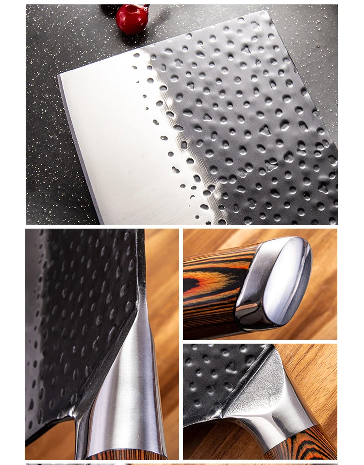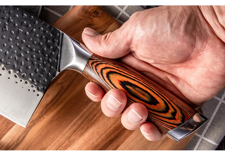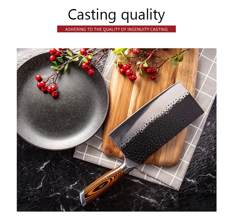 - Premier Meat Cleaver➦An идеальный подарок для любого домашнего или профессионального кухонного повара, Высококачественная углеродистая нержавеющая сталь значительно улучшает твердость кухонного ножа при 58-60 RHC. Хромовые, молибденовые и ванадиевые металлические элементы обладают хорошими особыми свойствами для прочности, твердости, антикоррозии и остроты этого резца.